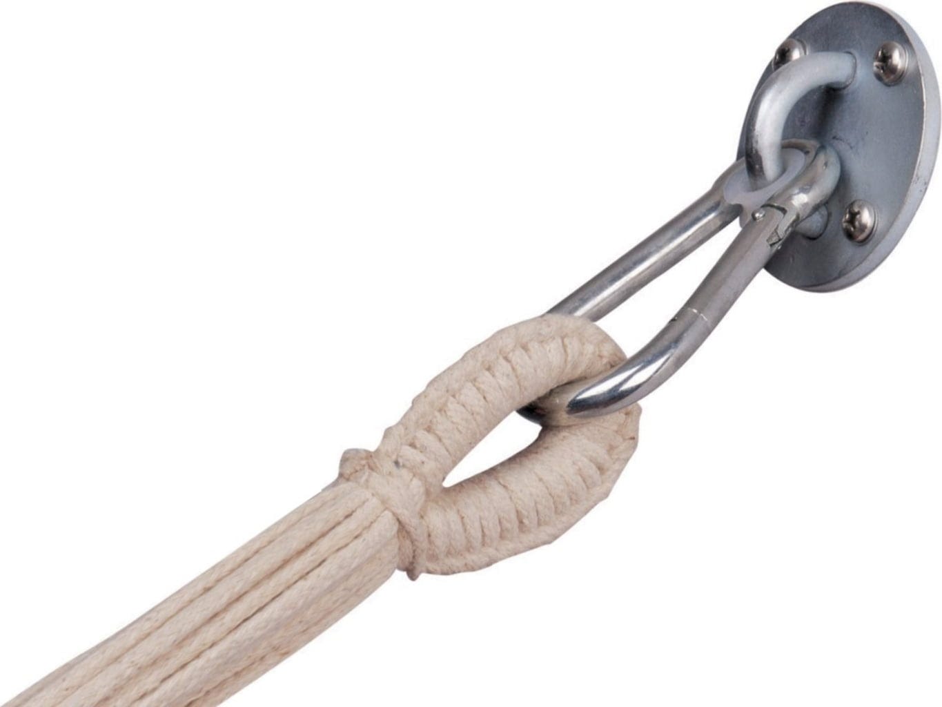 Montaż hamaka jest bardzo prosty: dzięki praktycznemu karabińczykowi można go szybko zawiesić. Szczególnym atutem jest zintegrowany prowadnik z tworzywa sztucznego, który zapewnia komfortowe i przede wszystkim ciche bujanie. Koniec z irytującymi dźwiękami! Dodatkowe bezpieczeństwo gwarantuje sprytny pierścień z nylonu, który zapobiega ocieraniu metalu o metal i tym samym wydłuża żywotność sprzętu.
