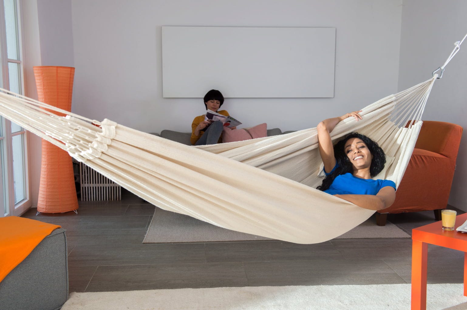 W XL hamaku Barbados można znakomicie odpocząć i zostawić codzienność za sobą! Bardzo miękki, gęsto tkany materiał delikatnie otula ciało, zapewniając maksymalny komfort leżenia. Dzięki licznym linkom mocującym ciężar rozkłada się optymalnie, a hamak idealnie się rozkłada, dając uczucie prawdziwej lekkości.