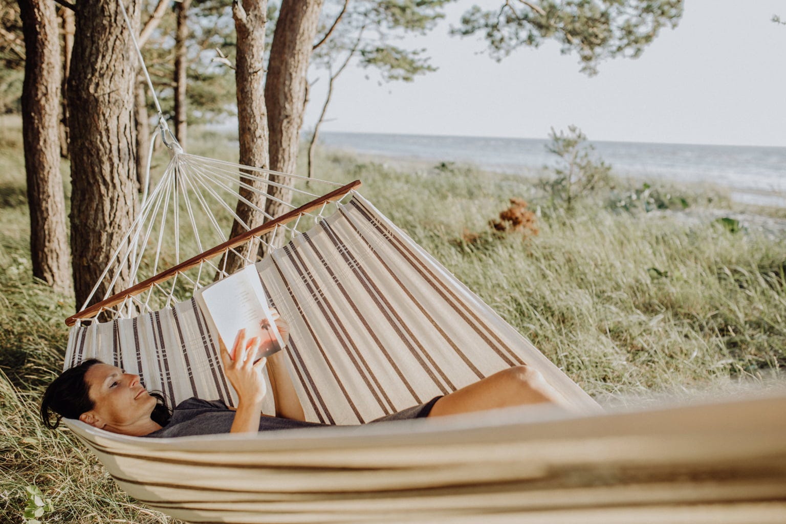 To nie tylko miejsce odpoczynku, ale i dzieło brazylijskiego rękodzieła. Ręcznie tkane, podwójnie pięciokrotnie szyte oczka tworzą solidną podstawę dla linek, gwarantując długą żywotność premium hamaka. Gęsty materiał o wadze 350 g/m² jest wytrzymały i znosi obciążenie do 150 kg – idealny na relaks w pojedynkę lub we dwoje! W zestawie znajduje się też dopasowany kolorystycznie, wielorazowy worek materiałowy – bardzo praktyczny do przechowywania!