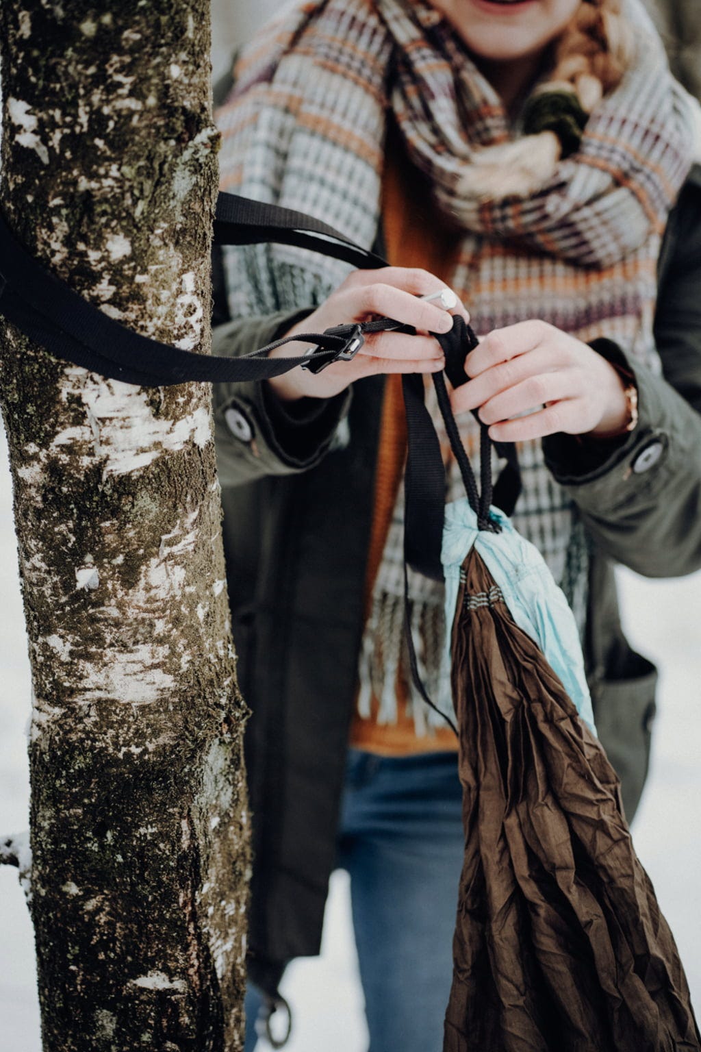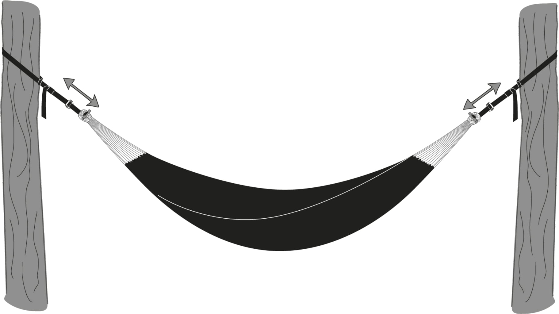 Obsługa jest niezwykle prosta: paski są bezstopniowo regulowane od 15 do 220 cm dzięki praktycznym klamrom regulacyjnym, co daje łączny zakres regulacji od 30 do 440 cm. Dzięki temu z łatwością znajdziesz idealny odstęp między dwoma drzewami lub innymi punktami mocowania. Sprytnym łącznikiem z pętlą hamaka jest solidny kołek mocujący z aluminium. Po przełożeniu ustawia się w poprzek, zapewniając bezpieczne i pewne trzymanie.