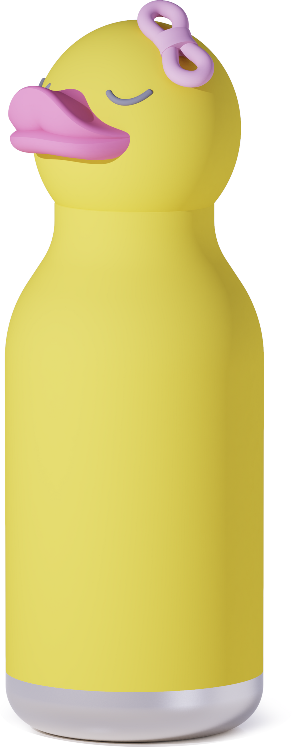 Ta urocza, izolowana butelka do picia z wyjmowaną i kolekcjonerską silikonową główką w kształcie kaczki wnosi zabawę i styl do codziennego życia. Podwójna izolacja próżniowa utrzymuje zimne napoje do 24 godzin i sprawia, że jest idealnym towarzyszem podróży. Wykonana z wysokiej jakości stali nierdzewnej butelka jest wytrzymała, szczelna i łatwa do trzymania dzięki miękkiej w dotyku powłoce. Zintegrowana silikonowa słomka ułatwia picie, gdziekolwiek jesteś.