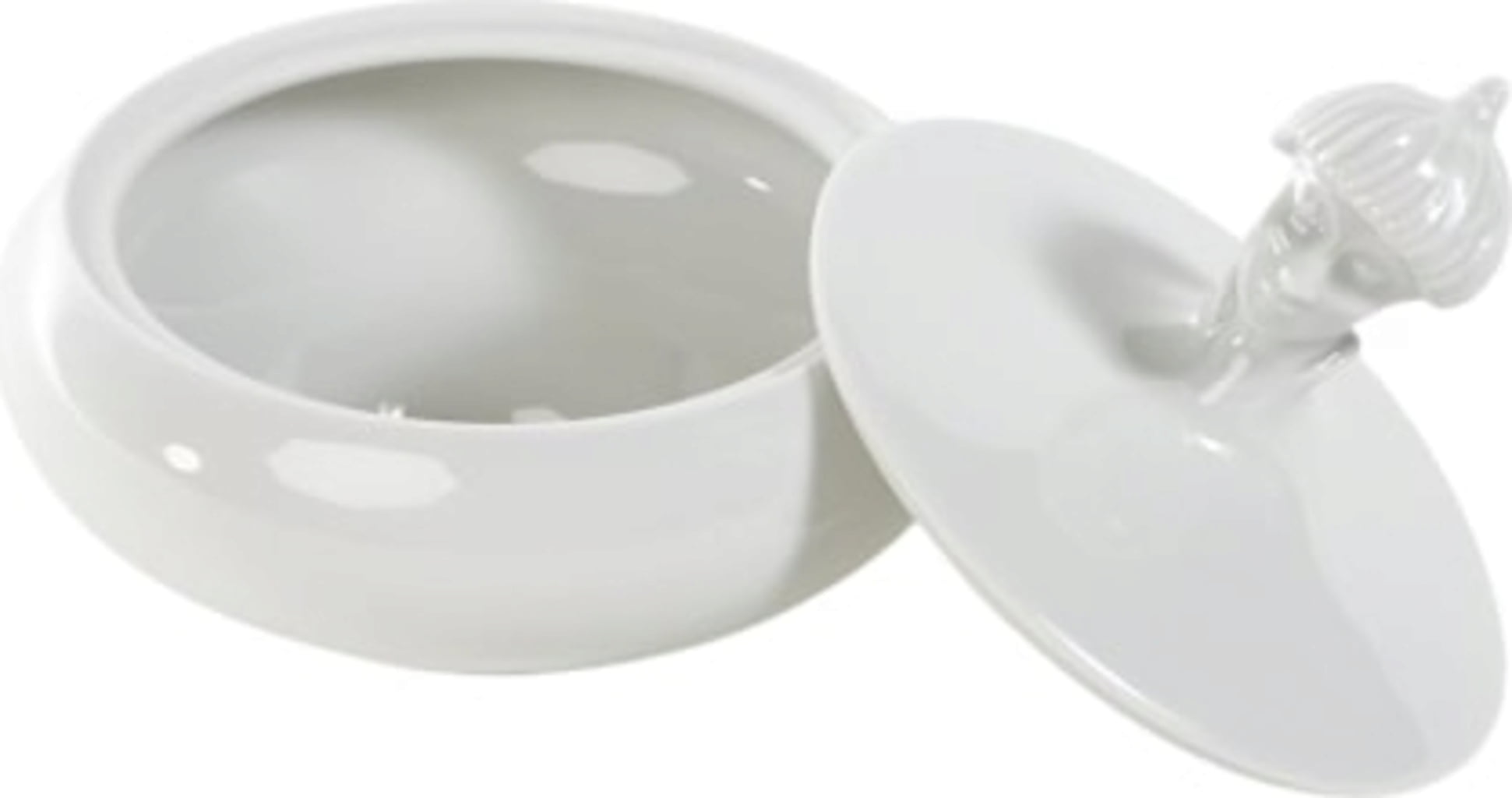 Cukiernicę z edycji „Orient” manufaktury porcelany Augarten Wien zaprojektowała Ena Rottenberg w 1930 roku. Uwagę przykuwa pokrywka cukiernicy, którą projektantka ozdobiła tzw. „egzotyczną główką”. Wymiary wysokiej jakości porcelanowego pojemnika to 13 x 12 cm. Wysoką jakość białej porcelany z manufaktury Augarten charakteryzują cienkie ścianki. Ciesz się pięknym designem w codziennym życiu.