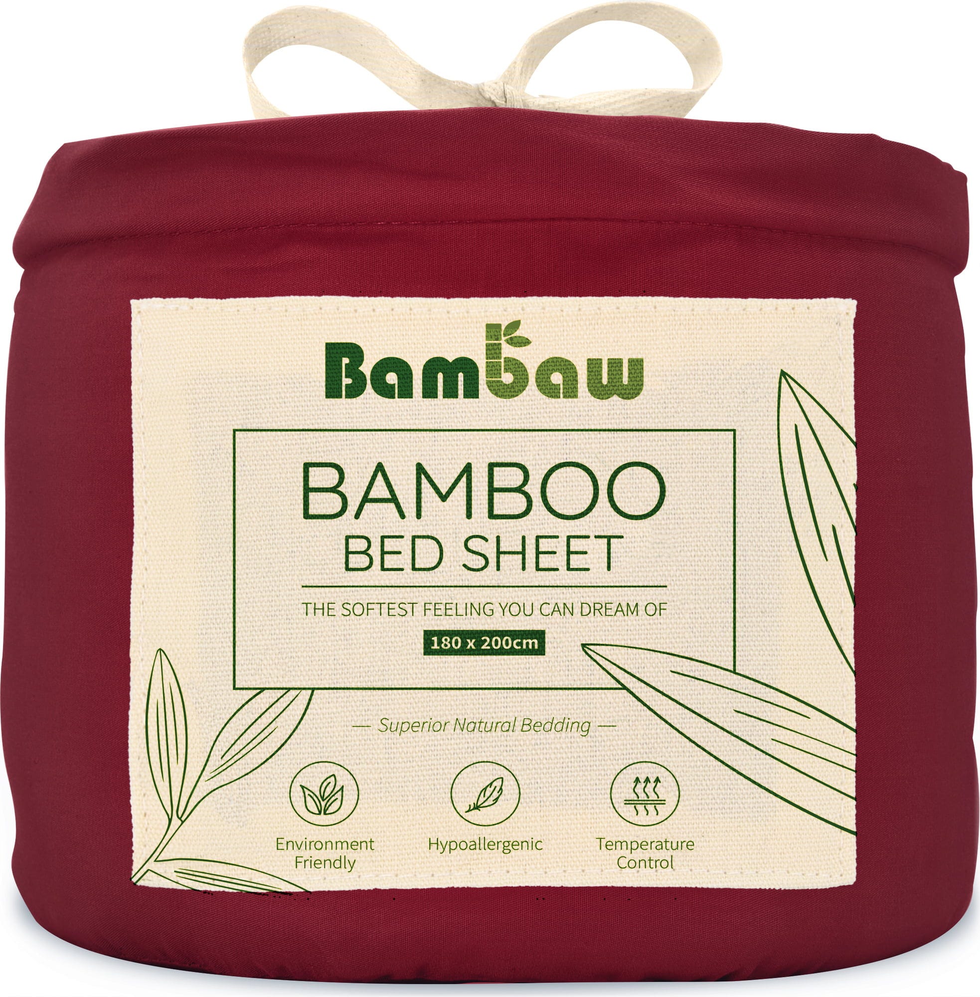 Bambaw Cozy Bambusowe prześcieradło 180 x 200 cm, Burgundy