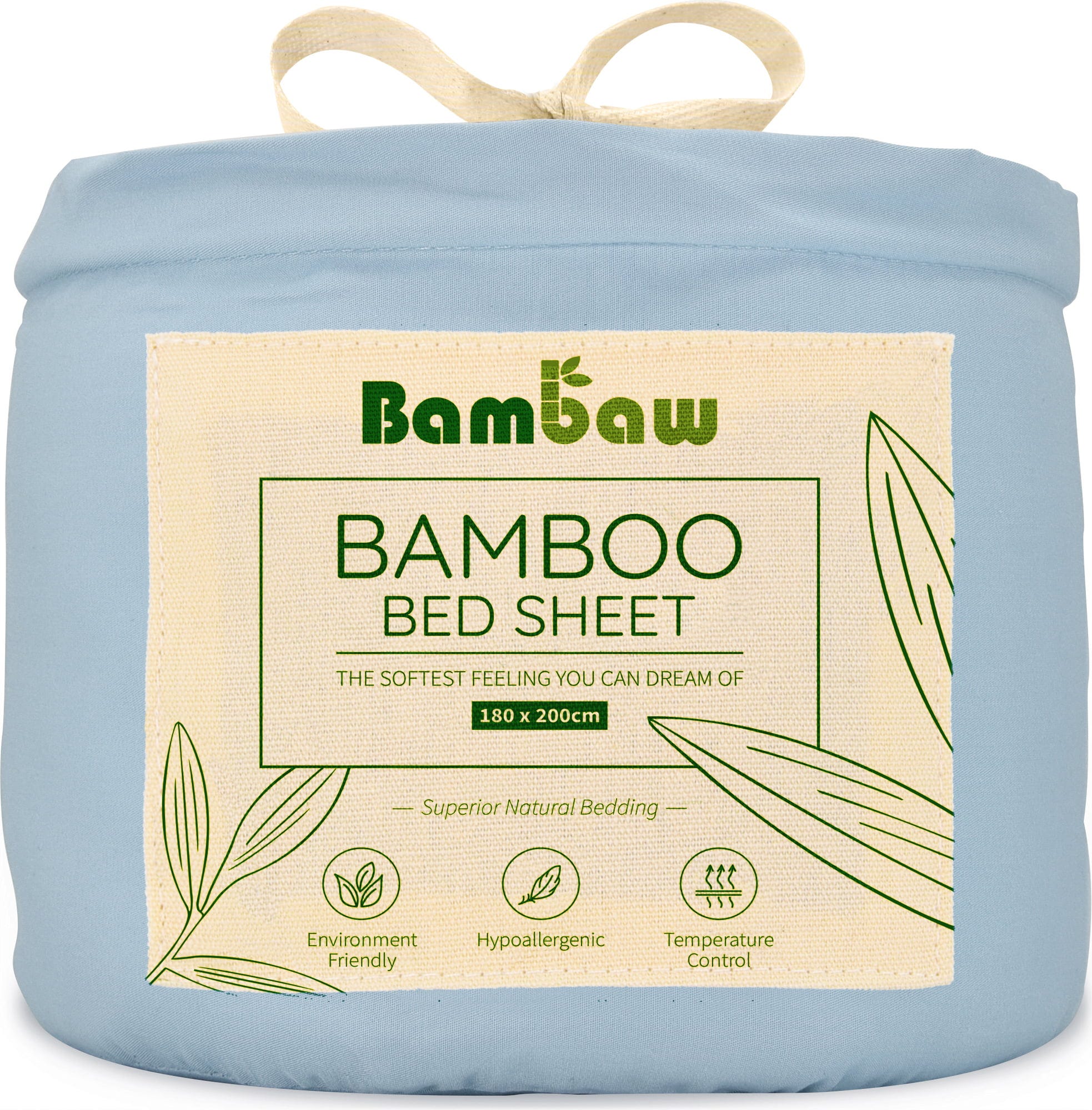 Bambaw Cozy Bambusowe prześcieradło 180 x 200 cm, Light Blue