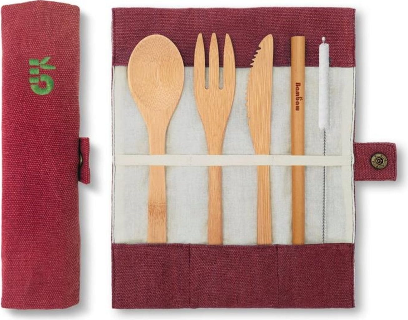Starannie zaprojektowany zestaw sztućców bambusowych jest idealnym towarzyszem każdego, kto chętnie uczestniczy w piknikach i lubi podróżować. Niezależnie od tego, czy w pociągu, w pracy, w parku czy na łonie natury - z tym zestawem zawsze jesteś doskonale przygotowany, aby bez szkody dla środowiska zjeść coś pysznego i sycącego! Sztućce są wykonane z wytrzymałego bambusa i dzięki temu mogą posłużyć przez lata. Sztućce zostały zaimpregnowane z użyciem naturalnego oleju roślinnego, dlatego podczas stosowania nie pozostawiają posmaku w ustach, a utrzymanie ich w czystości jest łatwe i przyjemne. Każdy element zestawu ma wyznaczone miejsce, a sztućce są doskonale chronione dzięki schludnemu i praktycznemu etui bawełnianemu.