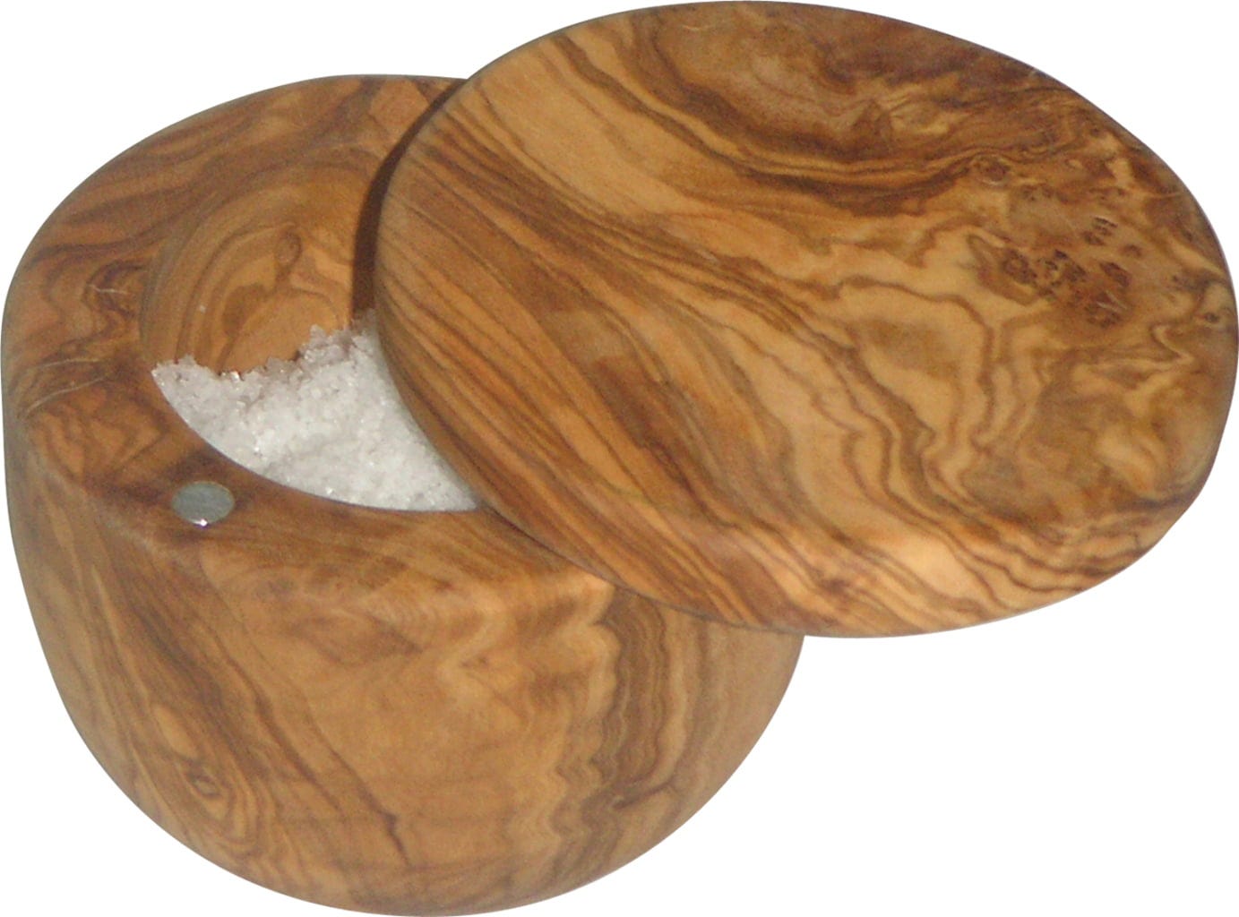 Pięknie wykonany pojemnik do przechowywania najważniejszego składnika aromatycznych potraw: najlepszej soli! Okrągłe pudełko z drewna oliwnego dzięki pokrywce chroni cenną zawartość przed wilgocią i kurzem. Praktyczna łyżka jest częścią zestawu i ułatwia porcjowanie. Podobnie jak wszystkie produkty drewniane firmy BÉRARD, ten szlachetny produkt jest tradycyjnie wykonywany ręcznie. Dzięki naturalnemu wzorowi i kolorowi każdy pojemnik jest wyjątkowy.