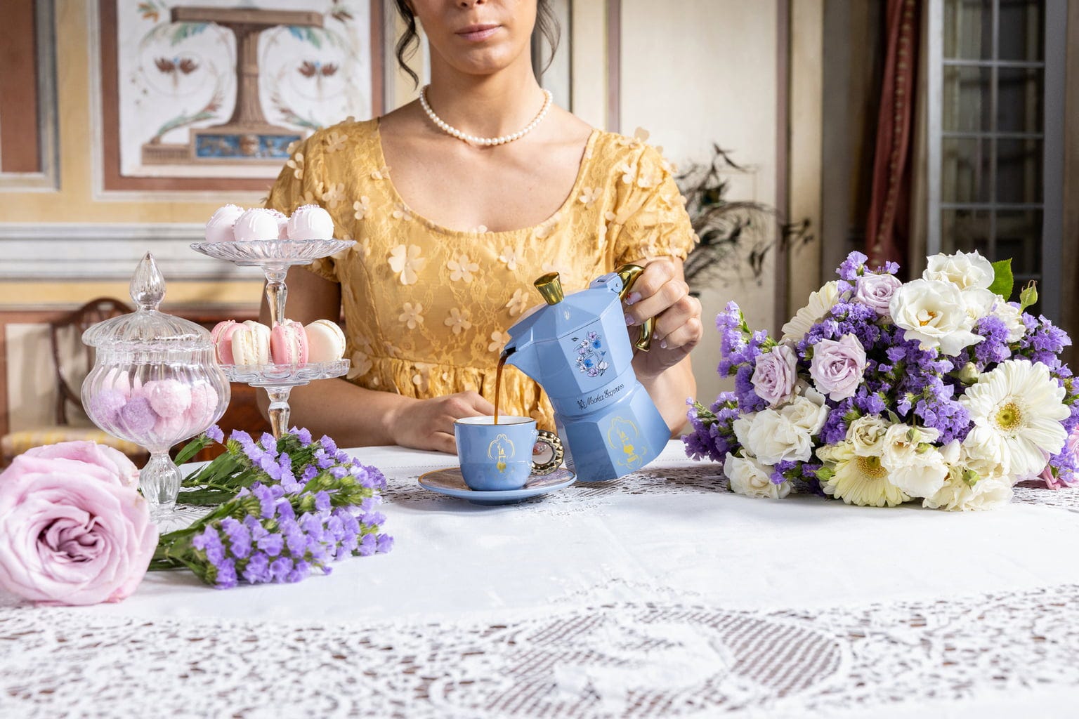 Ten 3-filiżankowy ekspres do kawy firmy Bialetti wnosi urok stylu Bridgerton bezpośrednio do Twojej kuchni. Dzięki kwiatowemu wzorowi i złotym detalom jest elegancką ozdobą każdej przerwy na kawę. Ale nie tylko dobrze wygląda - możesz go użyć do wyczarowania autentycznego espresso przypominającego włoską tradycję kawową. Niezbędny dla każdego, kto chce połączyć stylową przyjemność i pierwszorzędny smak w jednym, eleganckim akcesorium.