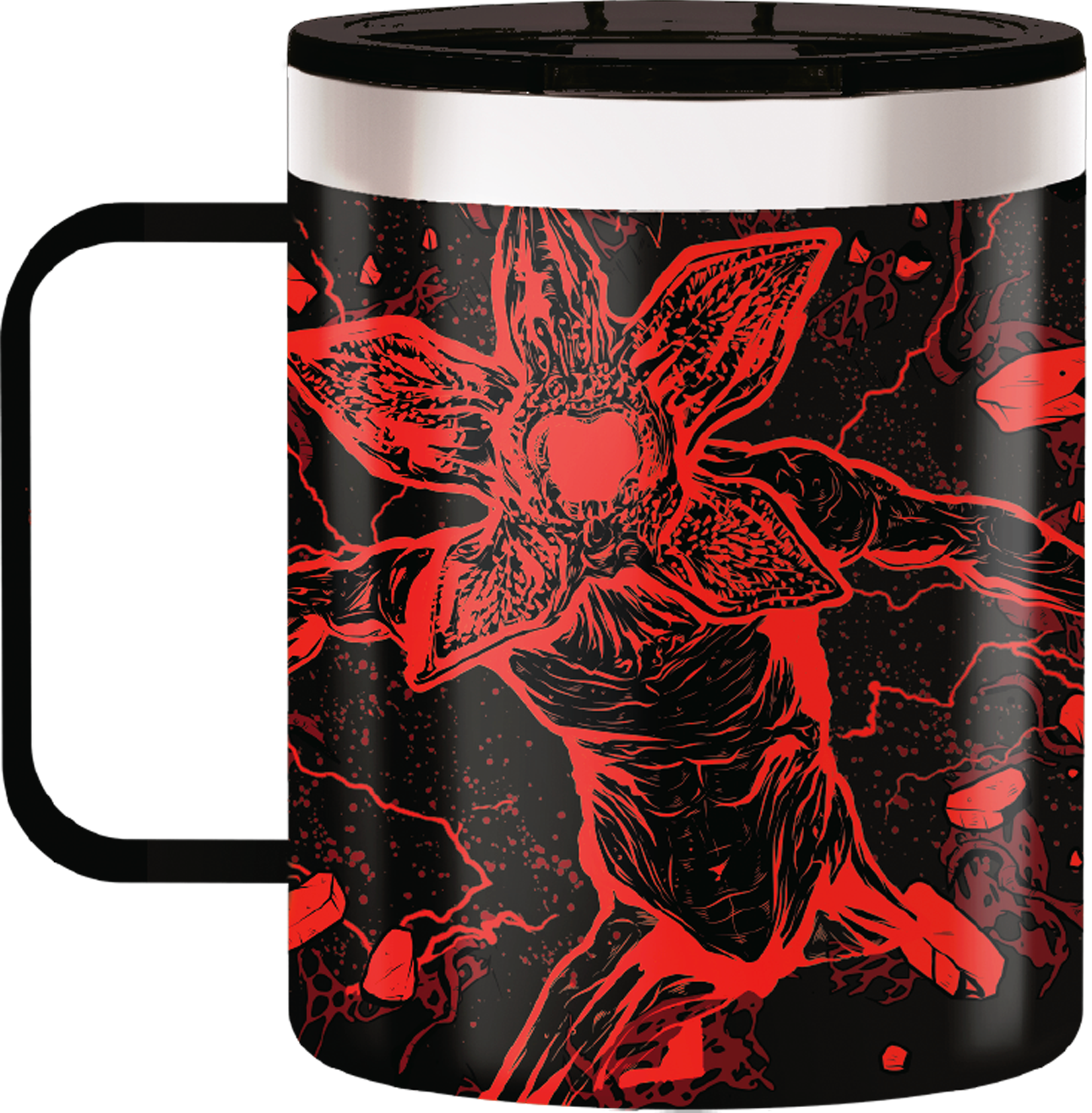 Piękna, szczegółowa grafika 3D w stylu "Stranger Things" sprawia, że ten kubek termiczny jest prawdziwą atrakcją dla wszystkich fanów kultowego serialu.