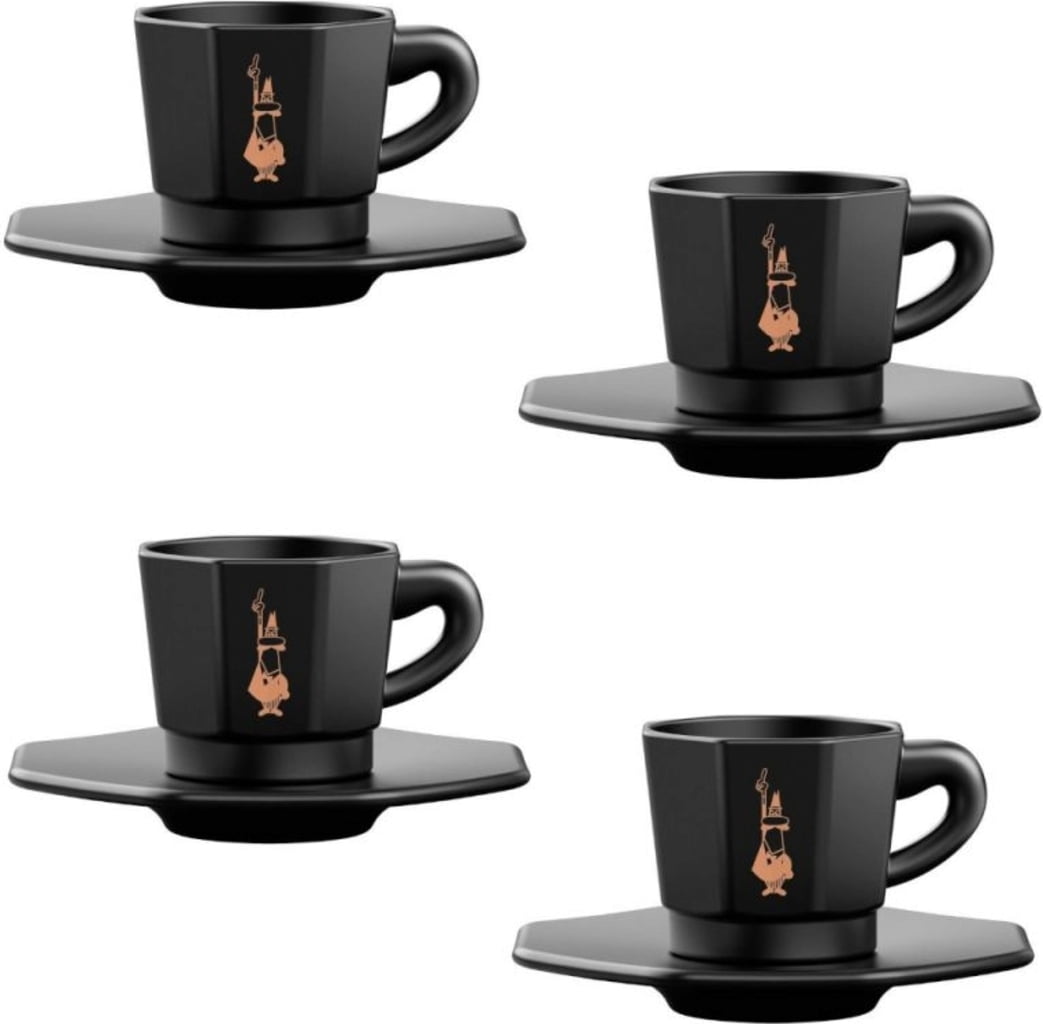 Bialetti Ośmiokątne filiżanki do espresso, 4 sztuki, czarny/miedziany