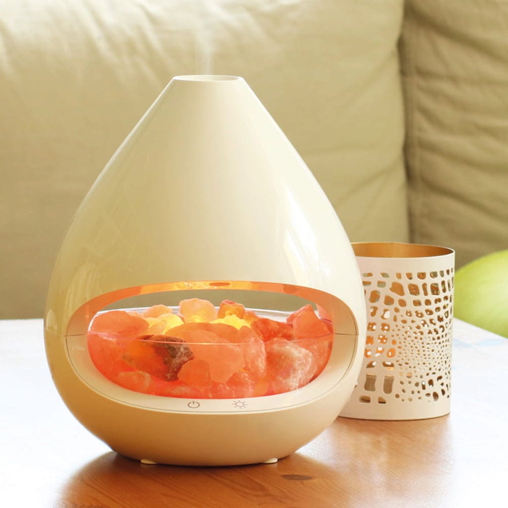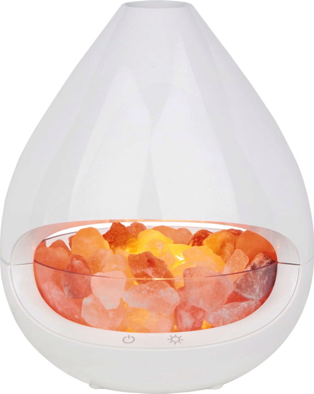Stwórz nastrojową atmosferę w swoim salonie dzięki połączeniu nowoczesnego designu i zintegrowanej lampy wykonanej z kryształów soli. Ciepły blask światła można regulować na 5 poziomach intensywności, a cenne kryształy himalajskie delikatnie rozpieszczają zmysły. Zintegrowane światło lekko podgrzewa lampę, uwalniając jony.