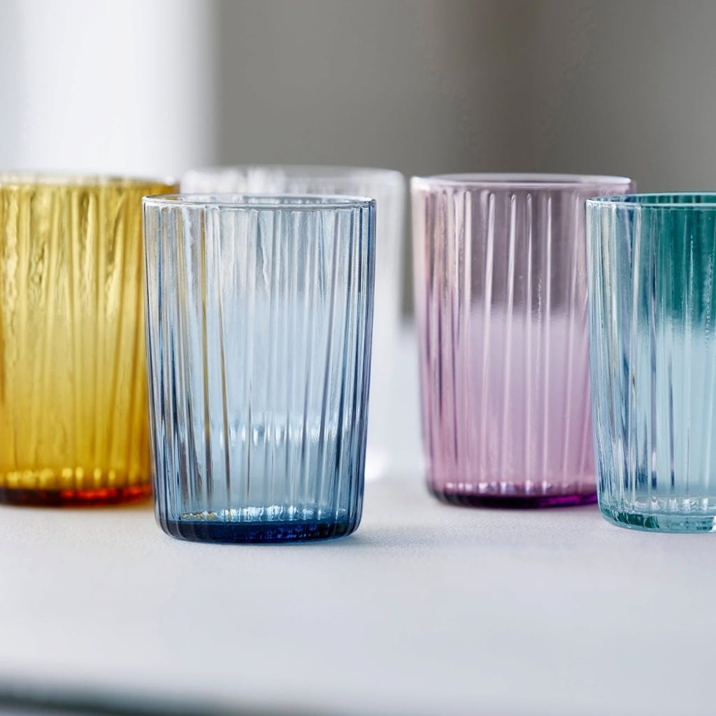 Pięknie wykonane szklanki z kolekcji Kusintha zachwycają czarującymi kolorami i atrakcyjnym, ryflowanym wzorem.