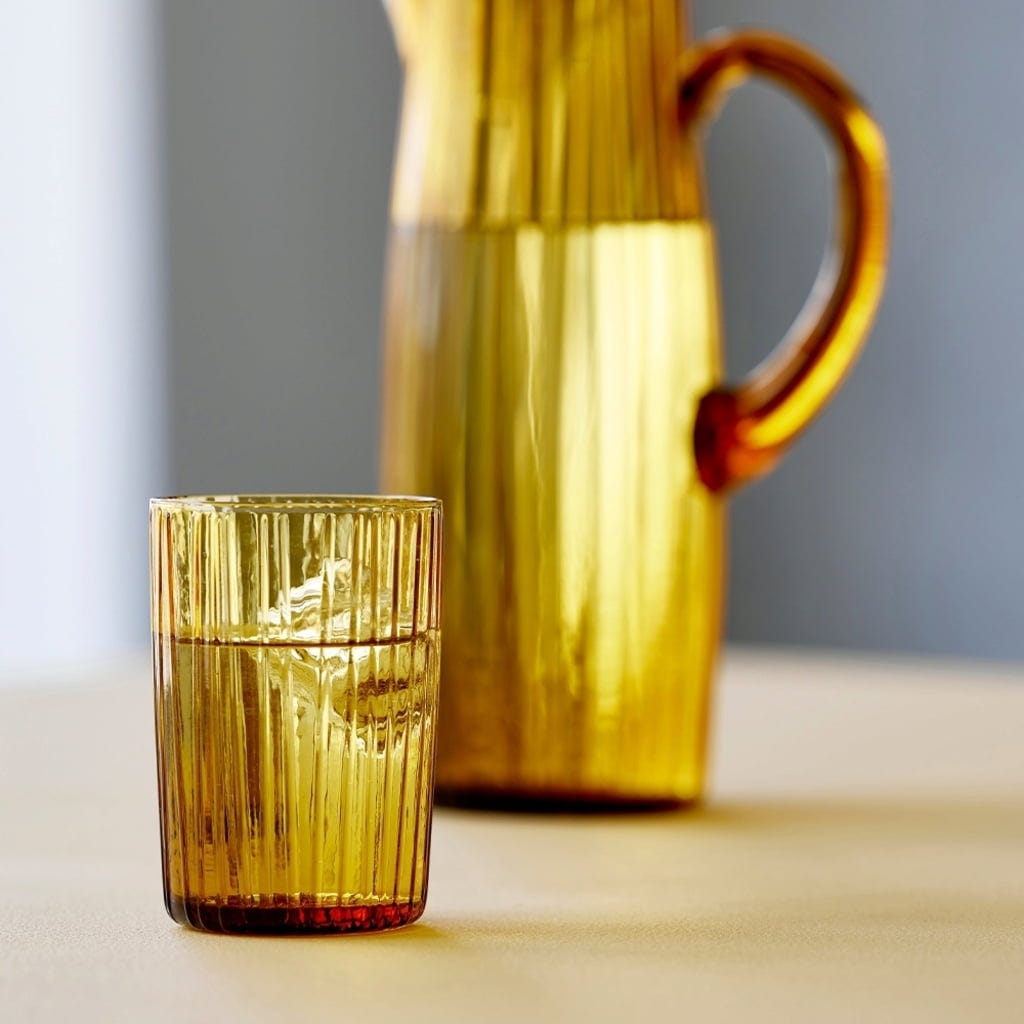 Pięknie wykonane szklanki z kolekcji Kusintha zachwycają czarującymi kolorami i atrakcyjnym, ryflowanym wzorem.