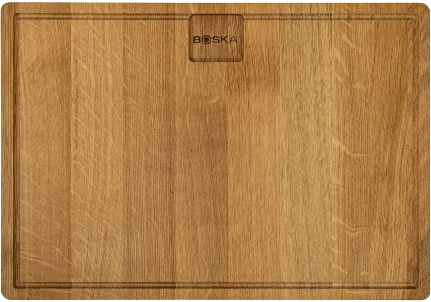 Prostokątna drewniana deska wykonana z drewna dębowego, idealna do serwowania potraw, przystawek i deserów lub jako deska do serów. Rowek na krawędzi zatrzymuje ciecz, co pozwala utrzymać stół w czystości. Dwa boczne wgłębienia na spodzie sprawiają, że podnoszenie i przenoszenie deski jest bardzo wygodne.