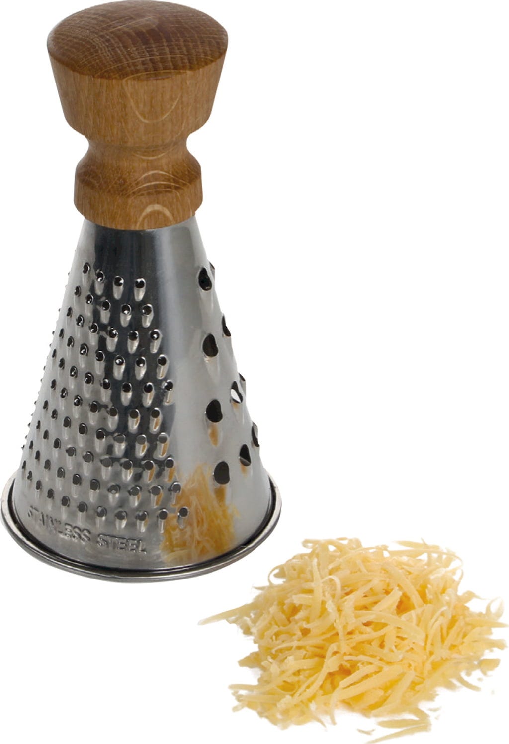 Prosta tarka do sera ze stali nierdzewnej z pięknym dębowym uchwytem. Idealnie nadaje się jako tarka stołowa, aby nadać potrawom ostateczny wygląd i smak. Oprócz krojenia, dwie inne powierzchnie umożliwiają uzyskanie grubych płatków lub drobnego proszku.