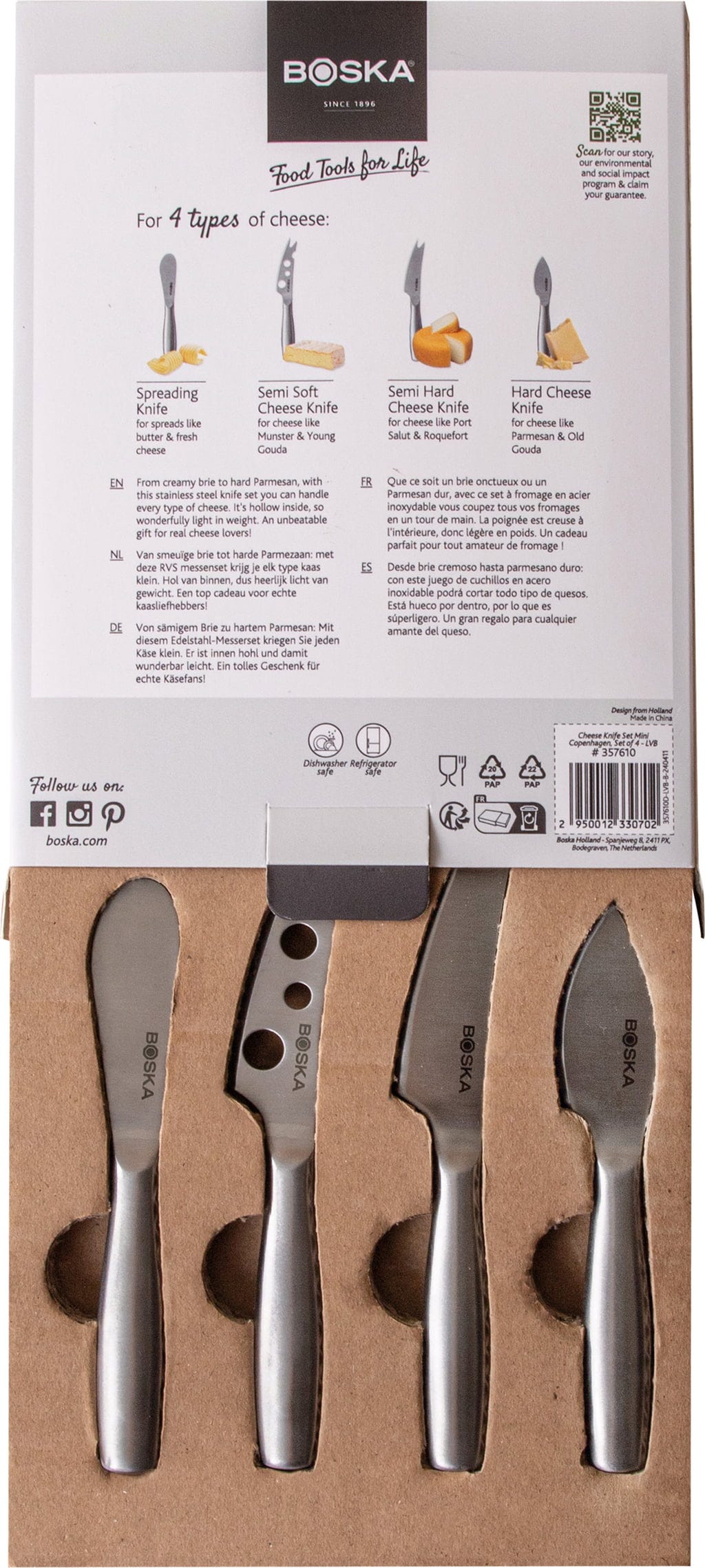 Niezależnie od tego, czy chodzi o kremowy miękki ser, mocny twardy ser czy delikatne pasty do smarowania - dzięki zestawowi noży do sera jesteś doskonale wyposażony! 4-częściowy zestaw wykonany z wysokiej jakości stali nierdzewnej łączy w sobie funkcjonalność i stylowy design. Każdy nóż spełnia swoje zadanie - razem tworzą bezkonkurencyjny zespół na desce serów. Dzięki lekkiej, wydrążonej rękojeści noże są wygodne w trzymaniu i można je myć w zmywarce.
