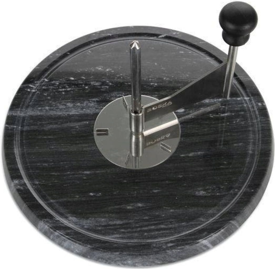 Marmurowa płyta i pięć kołków przymocowanych do podstawy zapewniają stabilność i dobry chwyt przez cały czas, a ostrze i trzpień centrujący wykonane z wysokiej jakości stali nierdzewnej gwarantują najlepsze rezultaty cięcia.