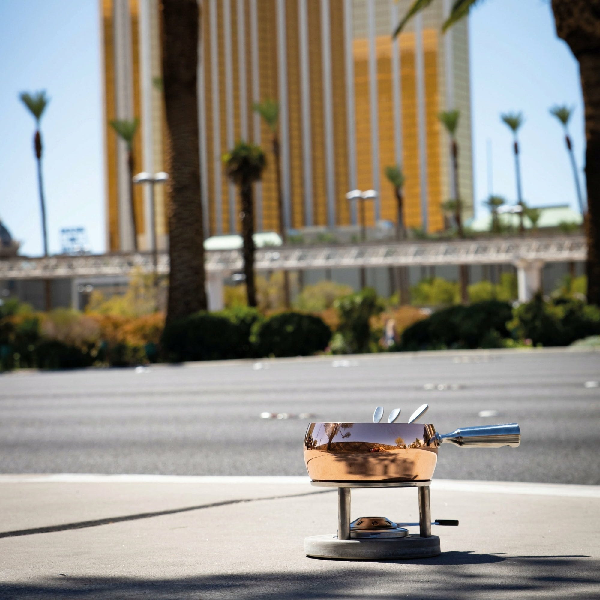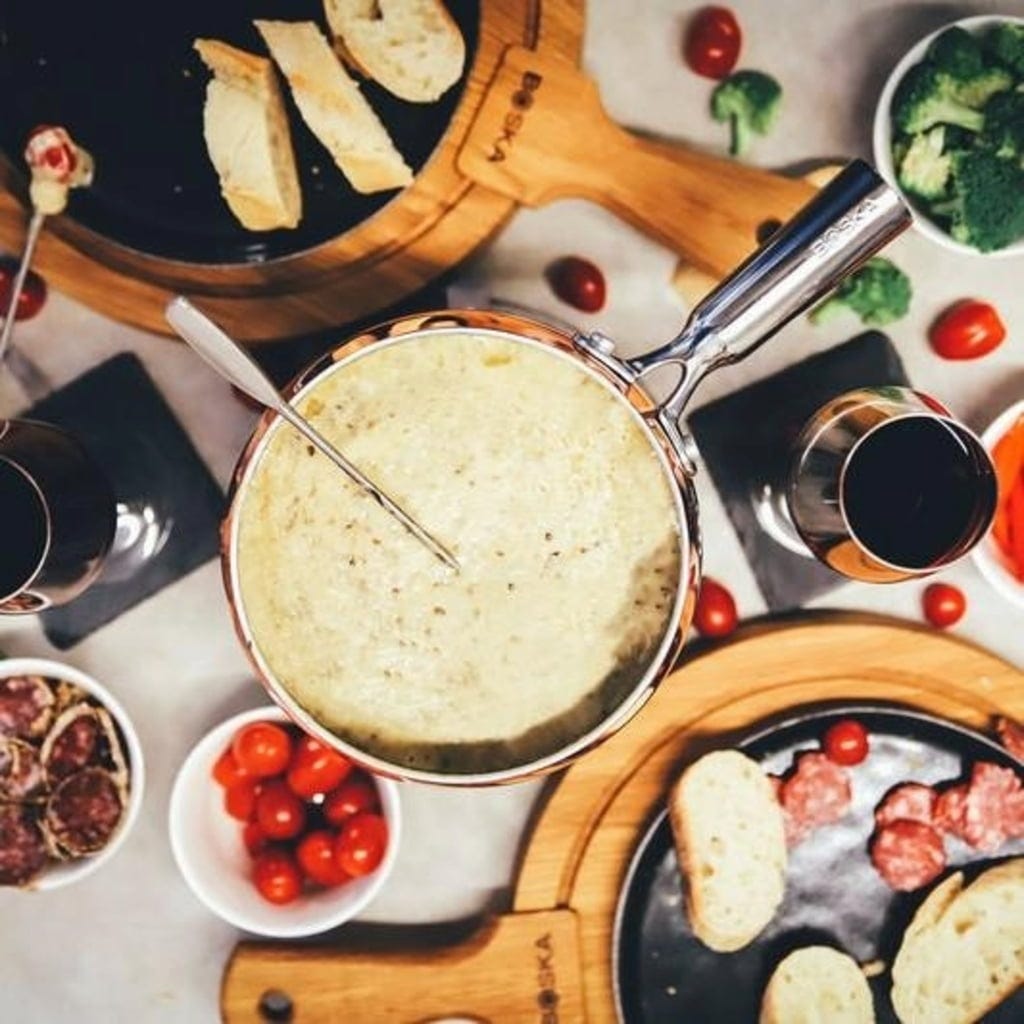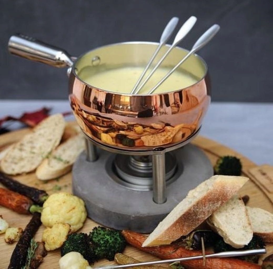 Czego do szczęścia potrzebują smakosze? Pyszny ser, świeża bagietka i odpowiednie wino! Ten ekskluzywny zestaw do fondue zachwyca nie tylko stylowym wyglądem, ale także doskonałymi właściwościami użytkowymi, gdyż miedź zapewnia doskonałe przewodzenie ciepła – gwarantowane są godziny rozkoszowania się serem w przytulnej atmosferze, i to nie tylko w sylwestra.