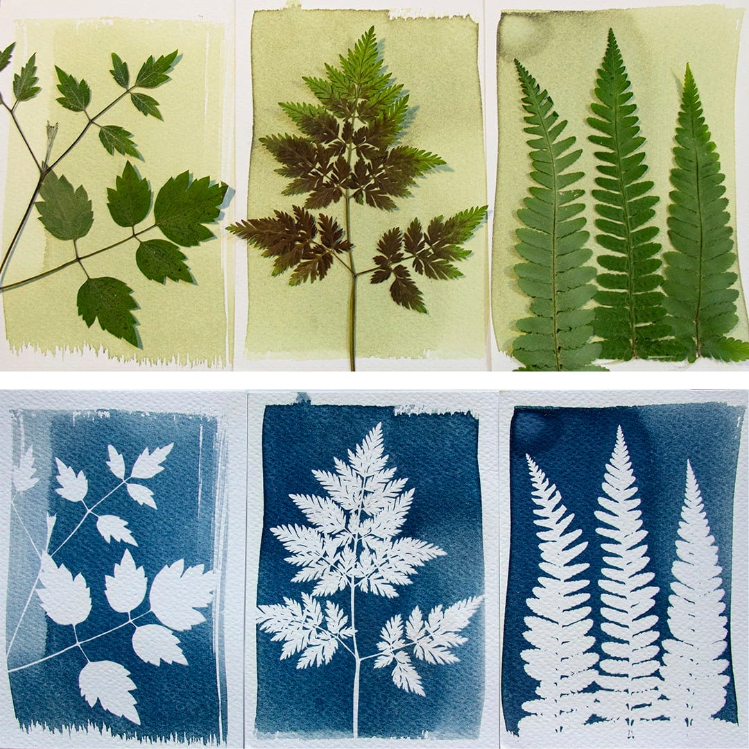 Dzięki temu zestawowi do cyjanotypii możesz stworzyć piękne dzieła sztuki, które ozdobią Twój dom lub będą wyjątkowym prezentem dla bliskiej osoby. Wszystko, czego potrzebujesz, to małe rośliny lub pojedyncze liście i trochę światła słonecznego. Zestaw zawiera już różne papiery, ale możesz również użyć własnego papieru lub naturalnych tkanin, takich jak bawełna i jedwab, do wykonania odbitek i dać upust swojej kreatywności.