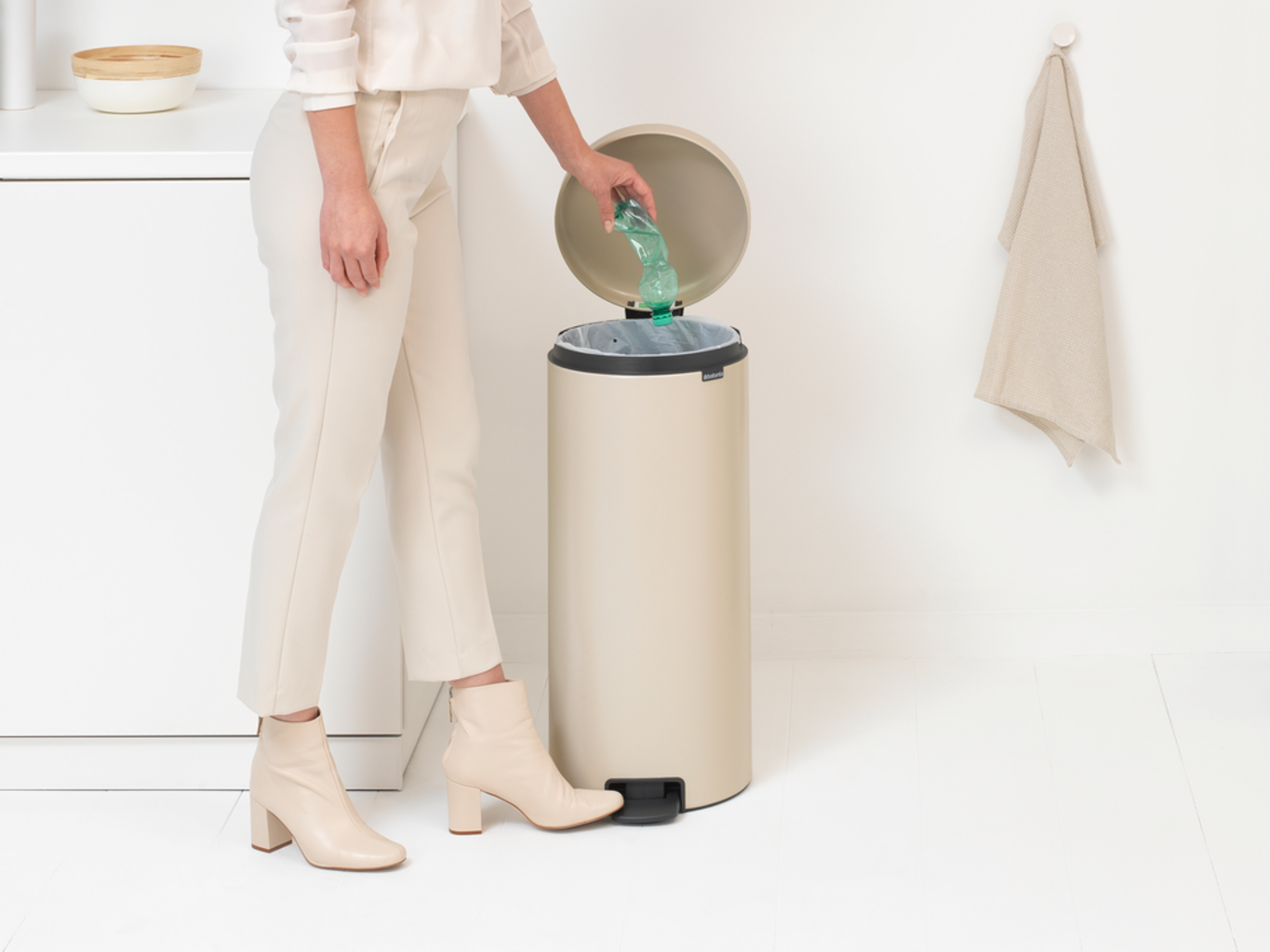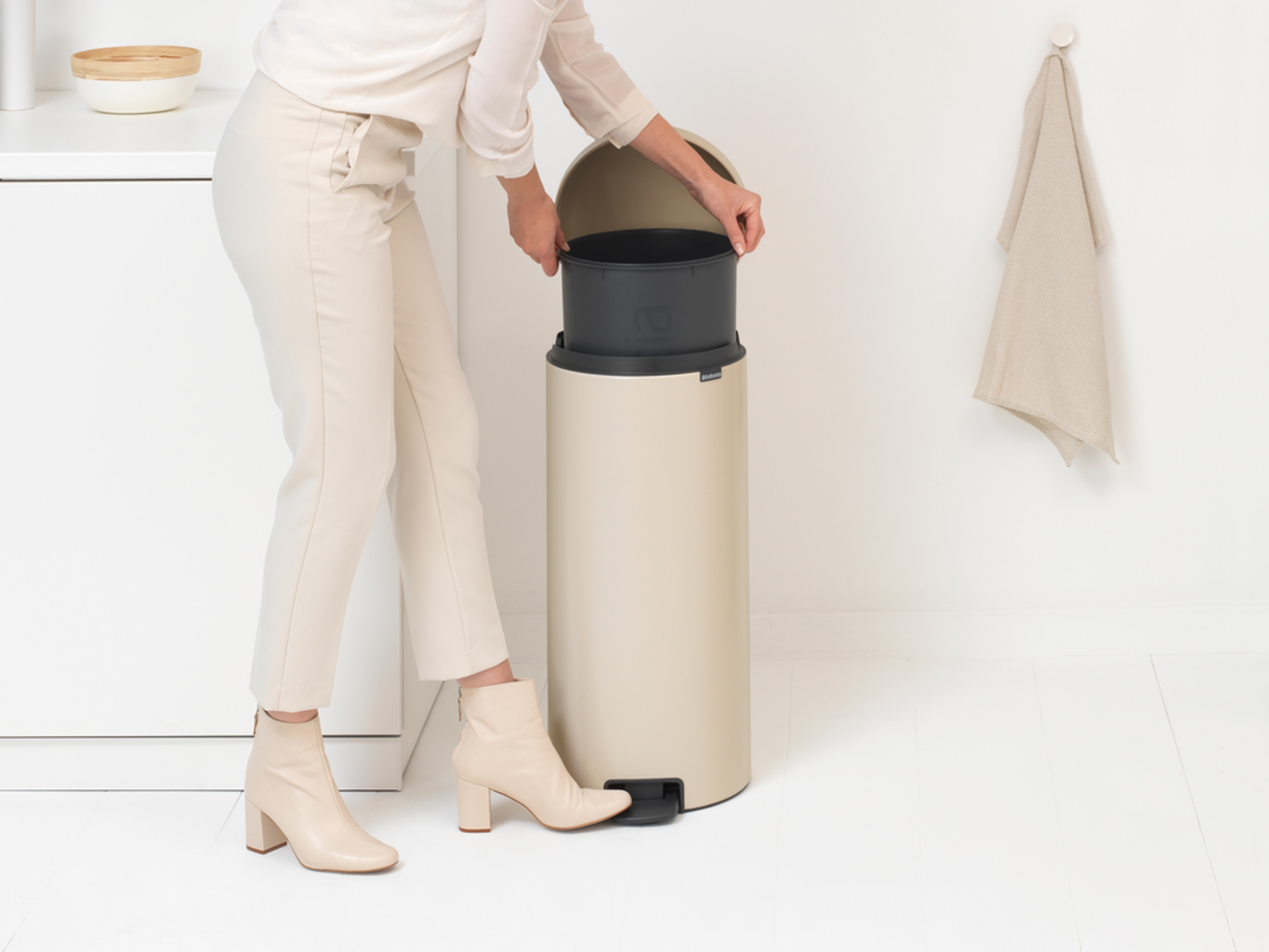 Brabantia Newicon 30 L kosz na śmieci z plastikową wkładką, Soft Beige