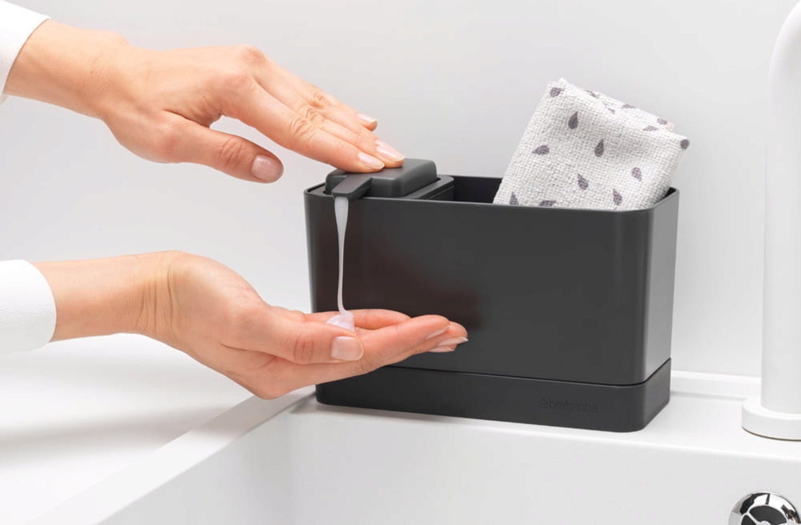 Doskonała organizacja i porządek to połowa sukcesu. Dzięki temu zestawowi z organizerem do łazienki i dozownikiem mydła powierzchnia robocza w kuchni lub łazience pozostanie czysta, a wszystko będzie szybko pod ręką. Dozownik mydła mieści do 250 ml mydła w płynie lub płynu do mycia naczyń, może być obsługiwany jedną ręką i nie kapie. Jest też wystarczająco dużo miejsca na gąbki, ściereczki i szczotki do mycia naczyń.