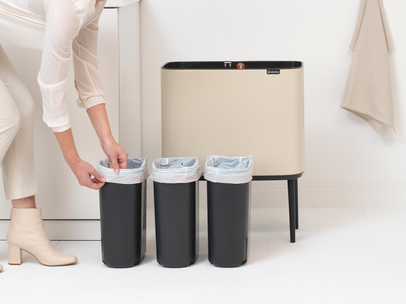 Szukasz dobrego rozwiązania do segregacji śmieci? Kosz Bo Touch Bin łączy w sobie piękny design ze wszystkimi funkcjami potrzebnymi do łatwej segregacji śmieci w domu. Posiada trzy wyjmowane plastikowe wkłady na trzy różne rodzaje odpadów.