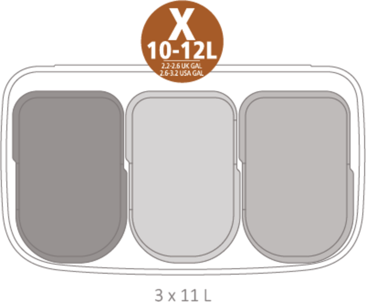 - Trzy wyjmowane plastikowe wkłady, każdy o pojemności 11 litrów - idealne do segregacji śmieci w domu