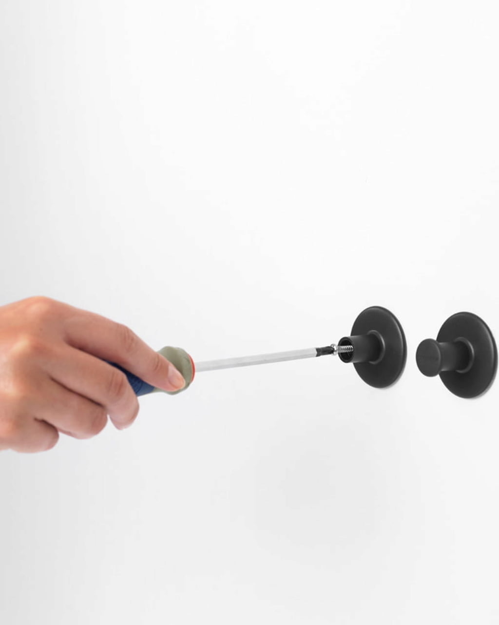 - Łatwy montaż na ścianie - z wierceniem lub bez - za pomocą śrub lub dwustronnej taśmy samoprzylepnej 3M