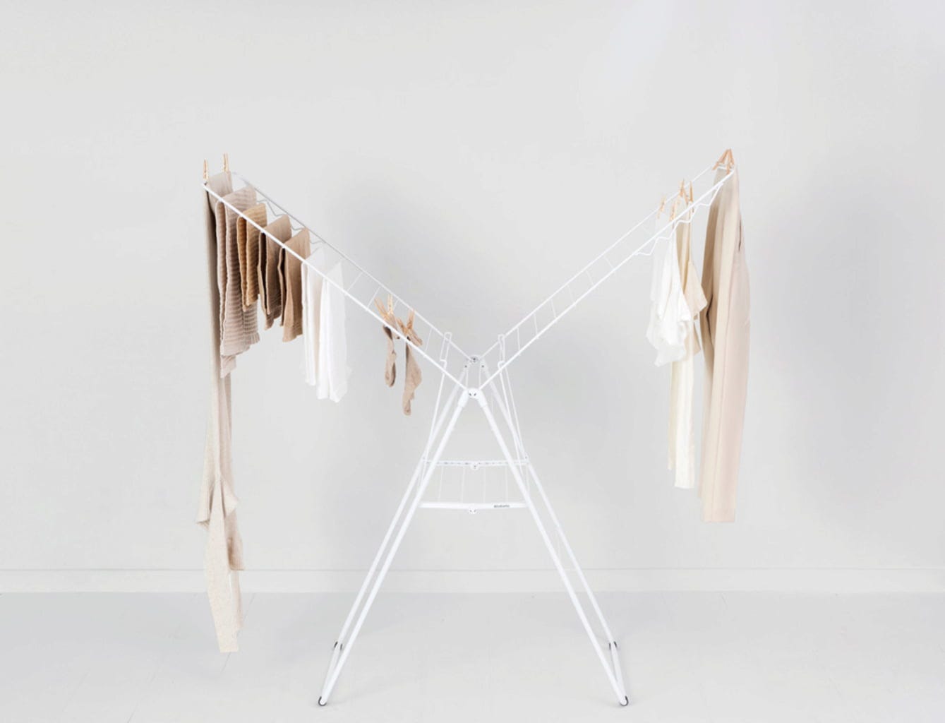 Szczególnie praktyczne: dzięki trójkątnej konstrukcji ramy skrzydełka można rozkładać pojedynczo lub używać na różnych wysokościach bez przewracania się suszarki.