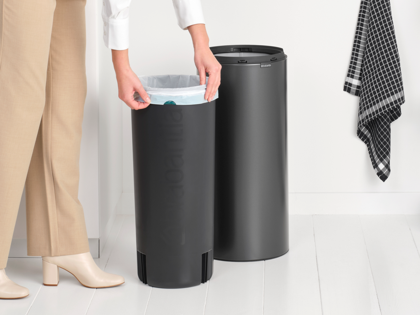 • Dostępne pasujące worki na śmieci Brabantia ze sznurkiem ściągającym (kod G) - idealne dopasowanie, łatwa obsługa