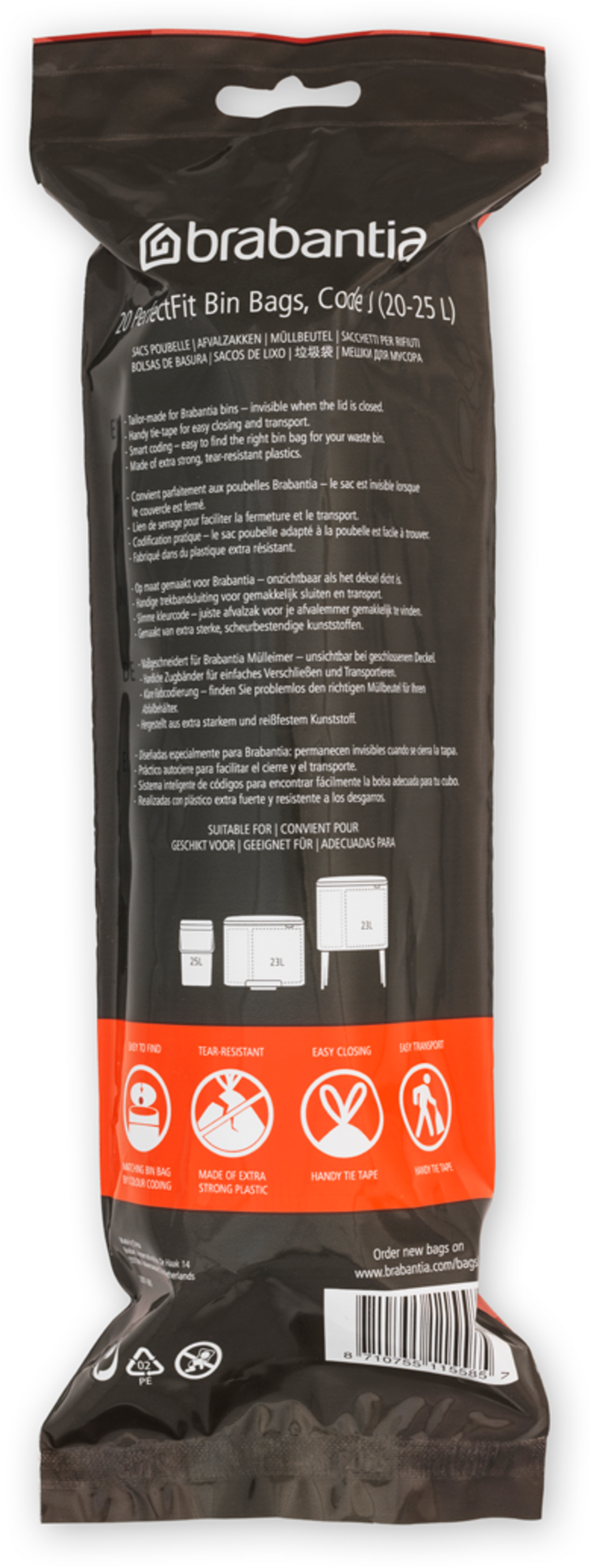 Brabantia Worki na śmieci PerfectFit do Bo Touch Bin - opakowanie w rolce, 20-25 L (J) - 20 szt.
