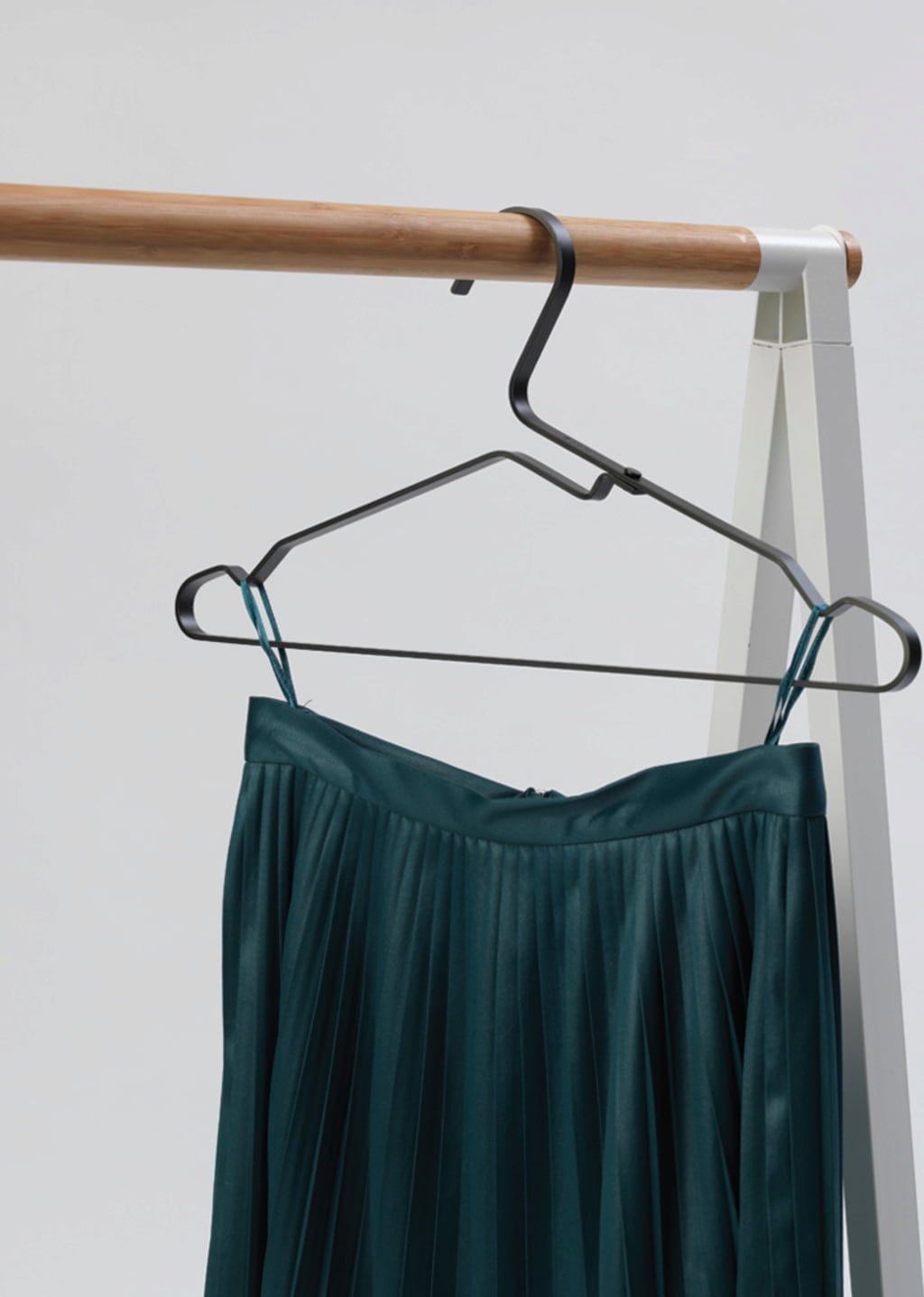 Praktycznie zakrzywiony wieszak ułatwia wieszanie T-shirtów, swetrów, a nawet koszul zapinanych na guziki bez rozciągania tkaniny. Materiał jest wykonany z trwałego, anodyzowanego aluminium, a dzięki praktycznemu wycięciu po bokach wieszaki te są również idealne do bluzek i sukienek z zawieszkami. Świetny, wszechstronny wieszak, który nie rozciąga ubrań i jest objęty 2-letnią gwarancją serwisową.