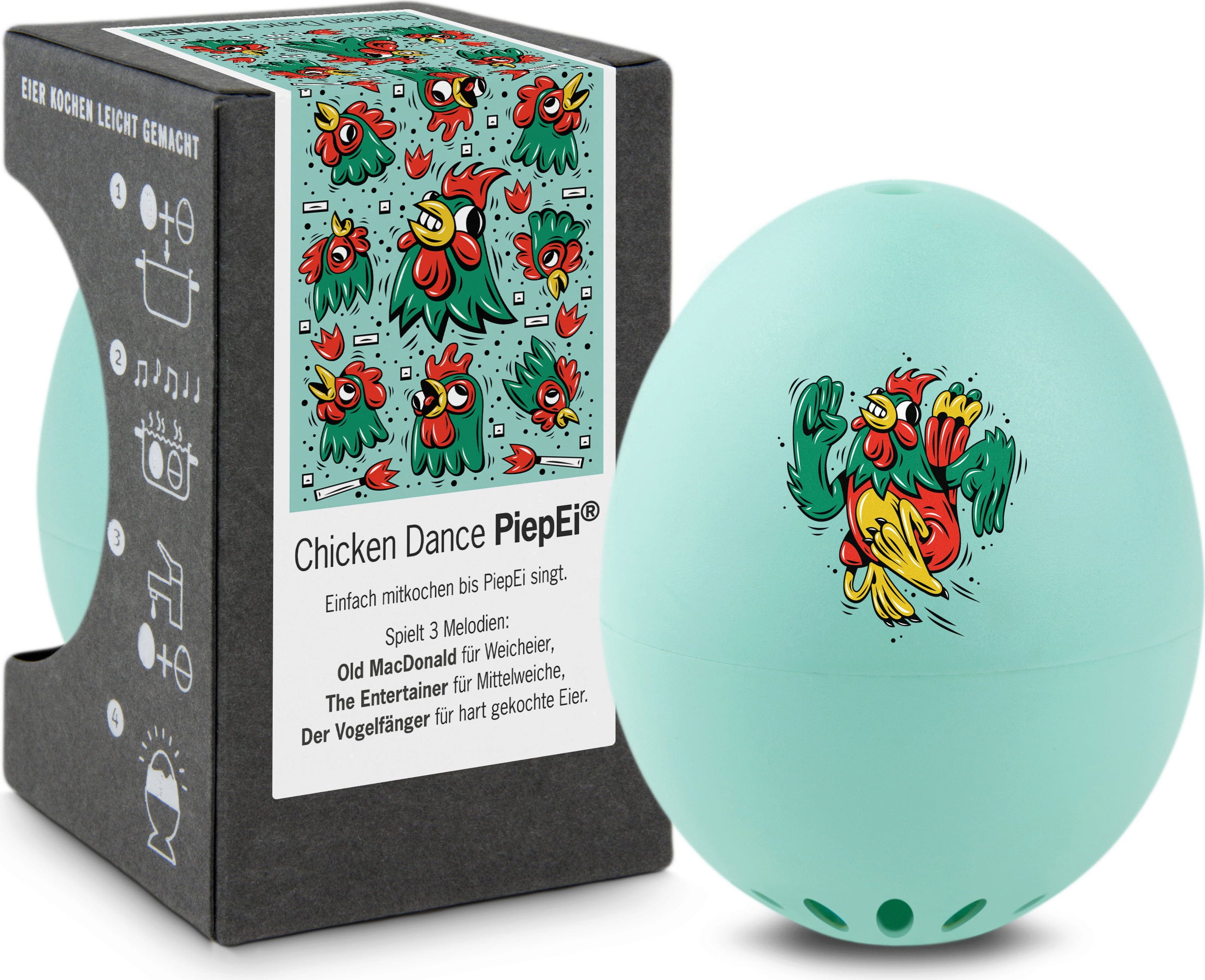 Wystarczy umieścić PiepEi z jajkami, ugotować je razem i poczekać, aż zabrzmi melodia odpowiadająca wybranemu stopniowi ugotowania. Działa to niezależnie od początkowej temperatury wody, wielkości jajek czy wysokości gotowania.