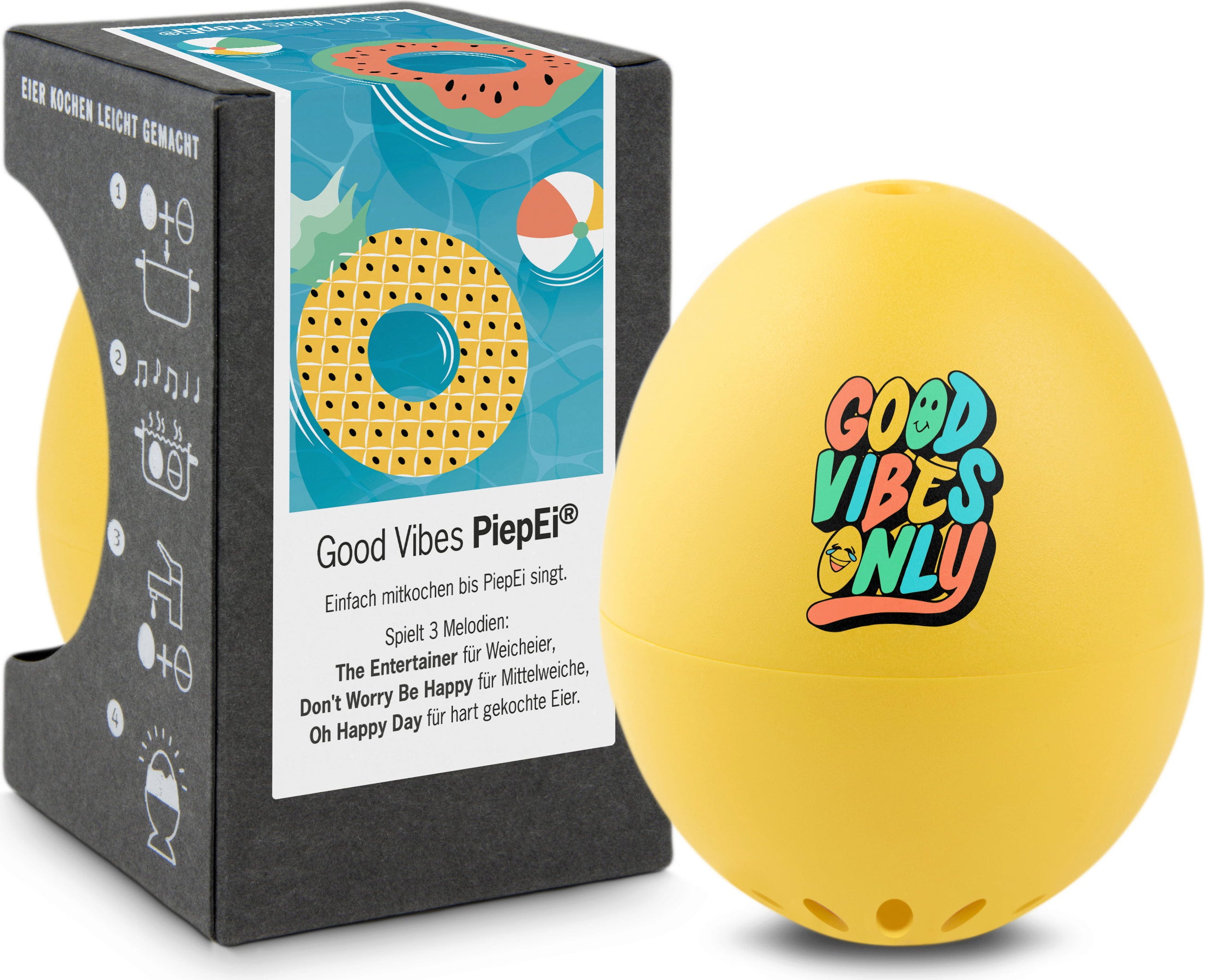 Wystarczy umieścić PiepEi z jajkami, ugotować je razem i poczekać, aż zabrzmi melodia odpowiadająca wybranemu stopniowi ugotowania. Działa to niezależnie od początkowej temperatury wody, wielkości jajek czy wysokości gotowania.