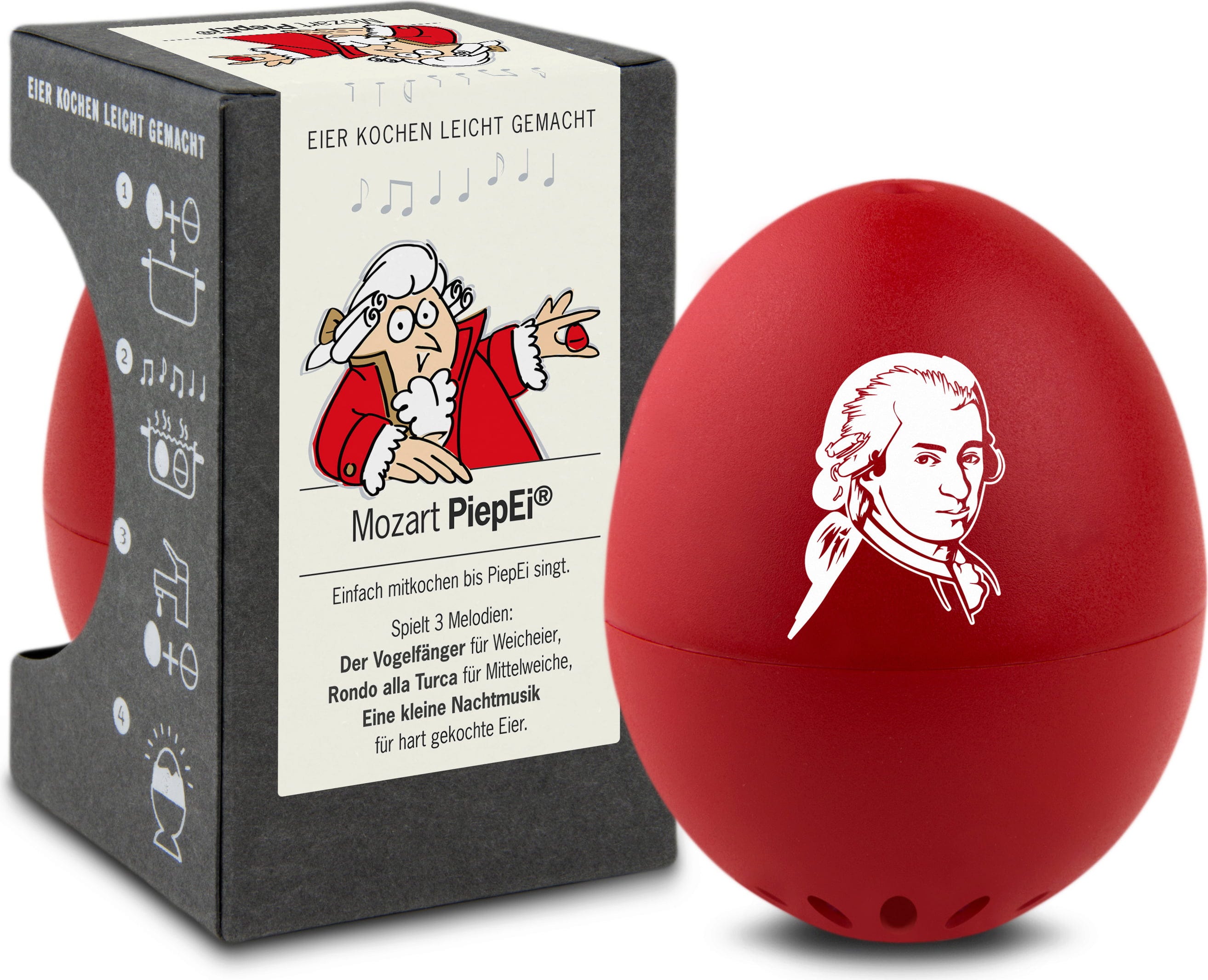 Wystarczy umieścić PiepEi z jajkami, ugotować je razem i poczekać, aż zabrzmi melodia odpowiadająca wybranemu stopniowi ugotowania. Działa to niezależnie od początkowej temperatury wody, wielkości jajek czy wysokości gotowania.