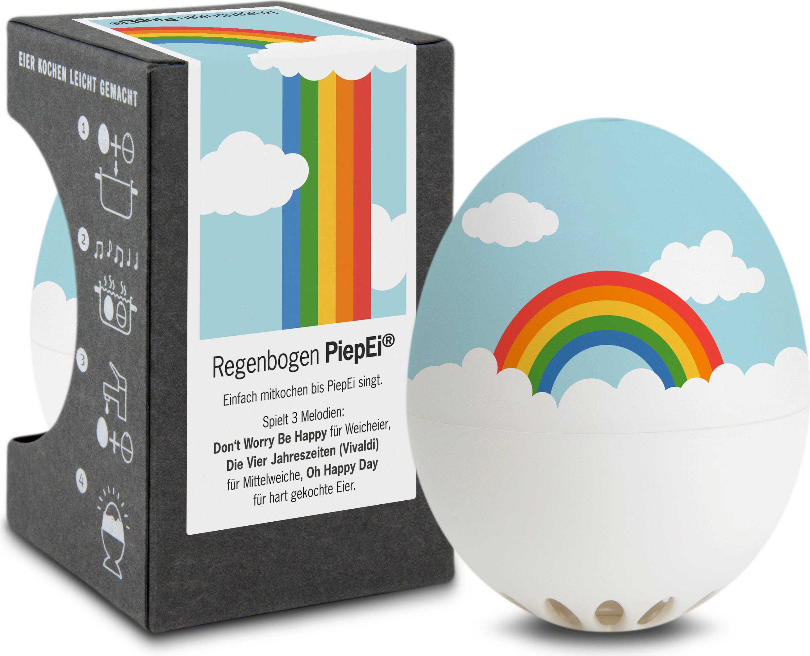 Wystarczy umieścić PiepEi z jajkami, ugotować je razem i poczekać, aż zabrzmi melodia odpowiadająca wybranemu stopniowi ugotowania. Działa to niezależnie od początkowej temperatury wody, wielkości jajek czy wysokości gotowania.
