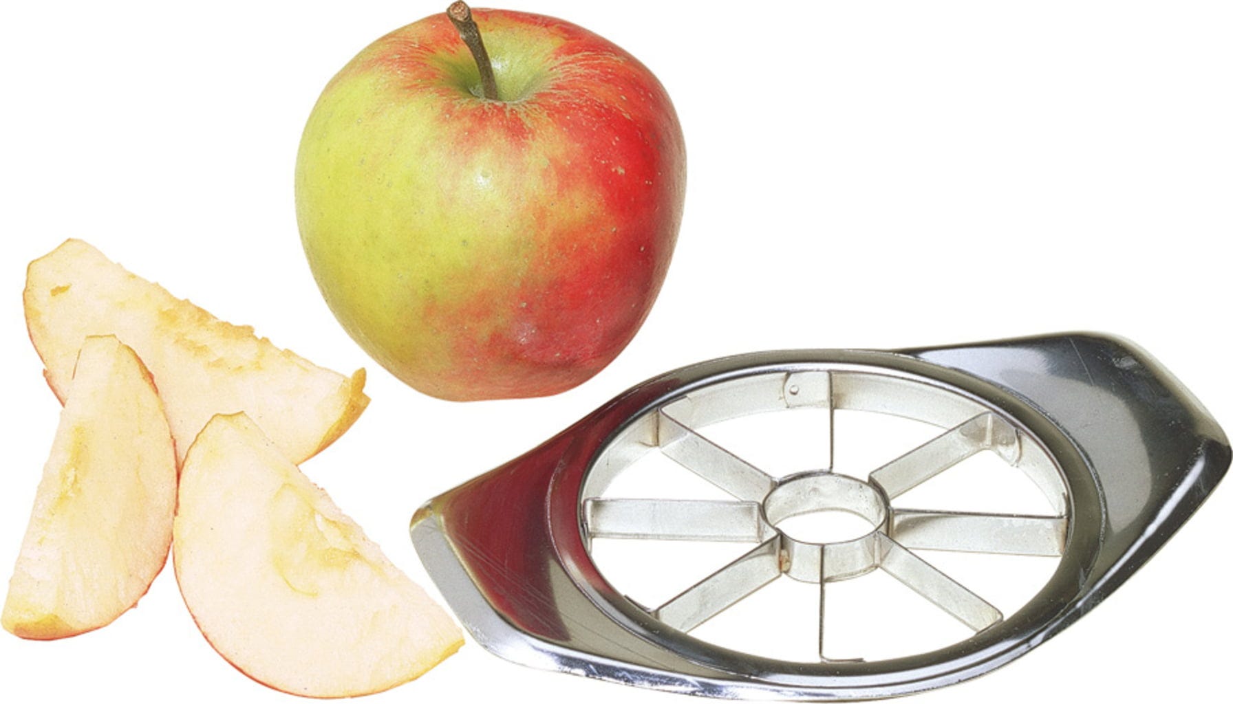 Krajalnica do jabłek ze stali nierdzewnej pozwala uzyskać piękne, równe plasterki jabłek.