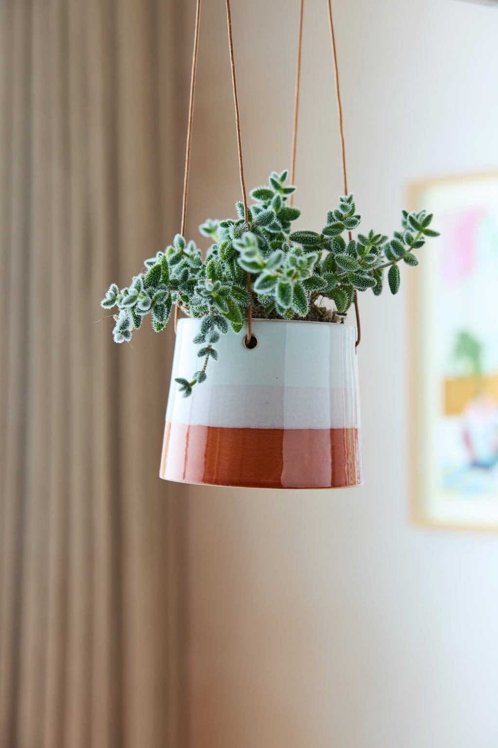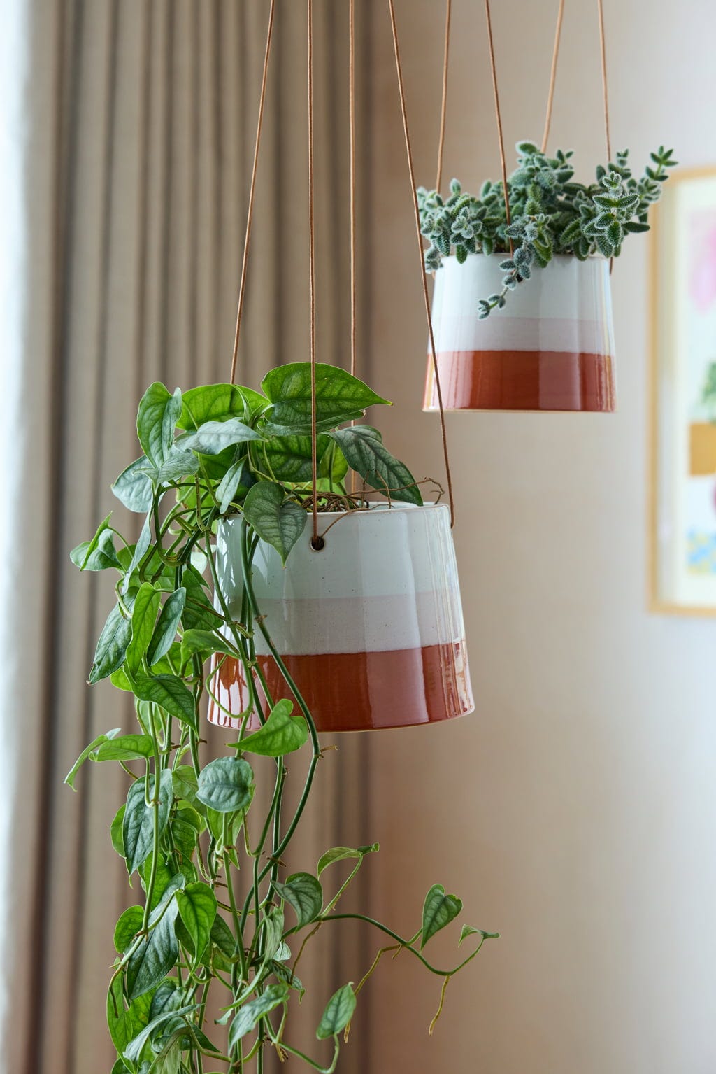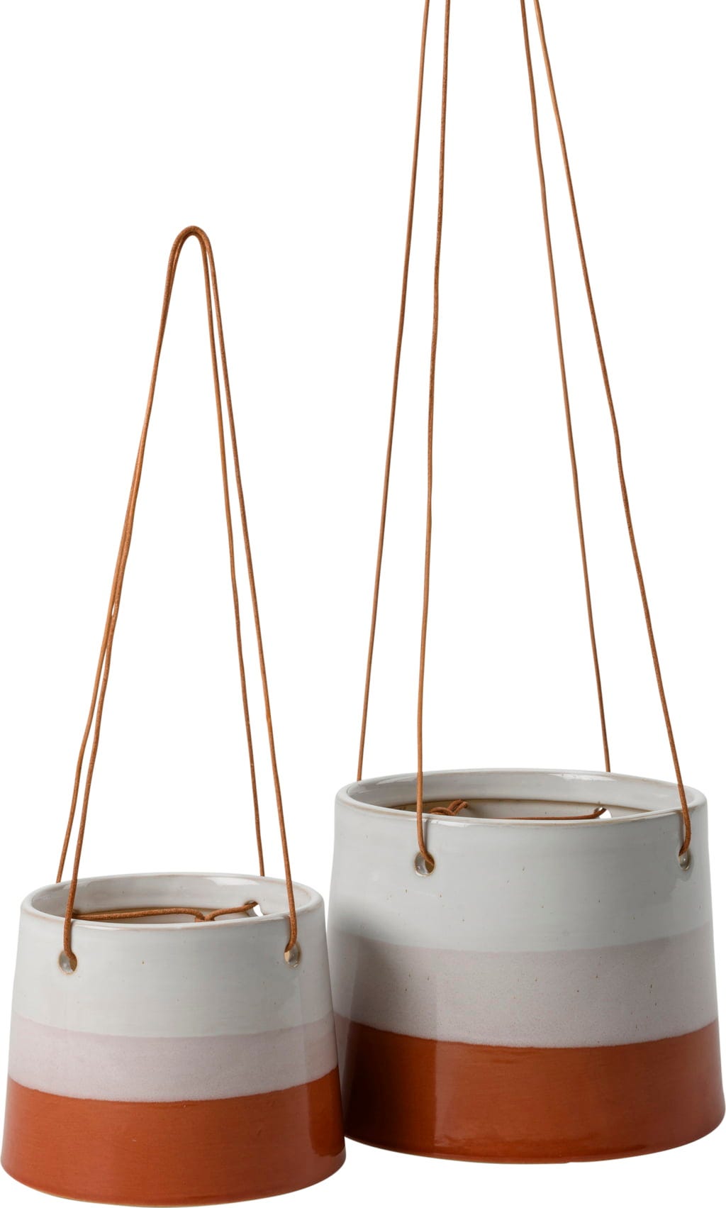 Wprowadź nowoczesny akcent do swojego domu ze stylową wiszącą doniczką „Collector” wykonaną z glazurowanej kamionki. Szerokie pasy stanowią prawdziwą atrakcję przyciągającą wzrok i doskonale eksponującą rośliny doniczkowe.