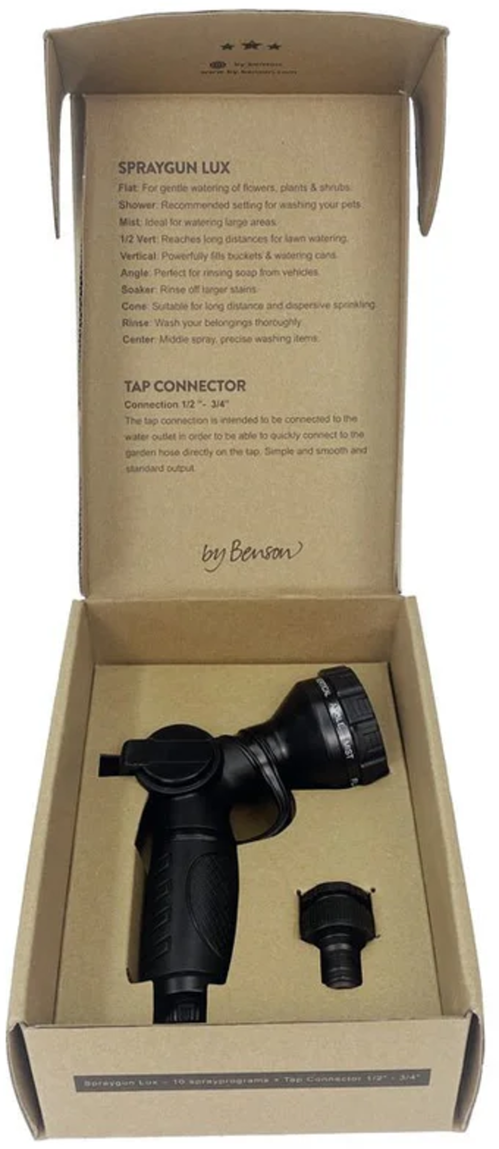 Zestaw Lux zawiera multi-prysznic i kompatybilne przyłącze do kranu, dzięki czemu możesz od razu go użyć. Wybieraj spośród 10 różnych wzorów natrysku i bądź przygotowany na każdą sytuację – niezależnie od tego, czy chcesz podlać rośliny, czy wyczyścić narzędzia ogrodowe.