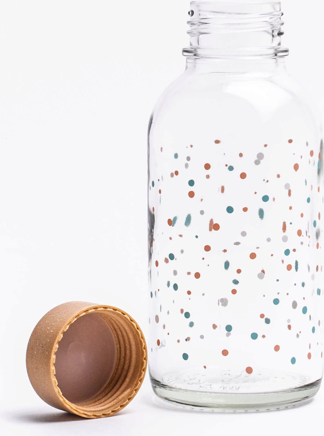 Picie wody może być takie radosne! Butelka do picia wykonana z wytrzymałego szkła z kolorowymi punktami jest idealnym towarzyszem poza domem. Ma pojemność 0,4 litra i dlatego idealnie nadaje się do tornistra lub plecaka przedszkolnego.