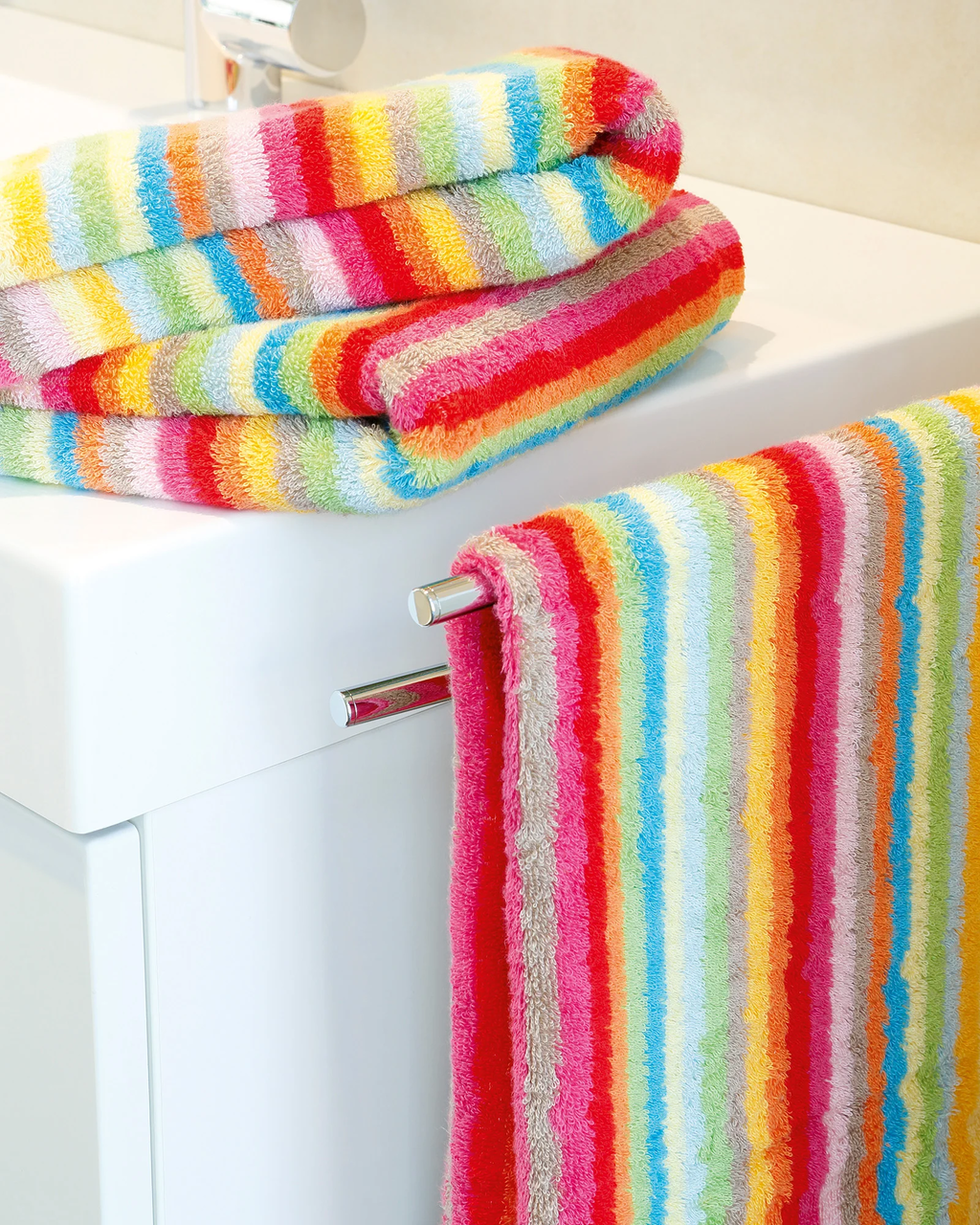 Odkryj ten wyjątkowy ręcznik z kolekcji Luxury-Home marki Cawö. Jego stylowy, dwustronny design przyciąga wzrok w każdej łazience, a delikatne paski i świeże kolory tworzą na każdej stronie inną kompozycję, zapewniając fascynujący, modny wygląd.