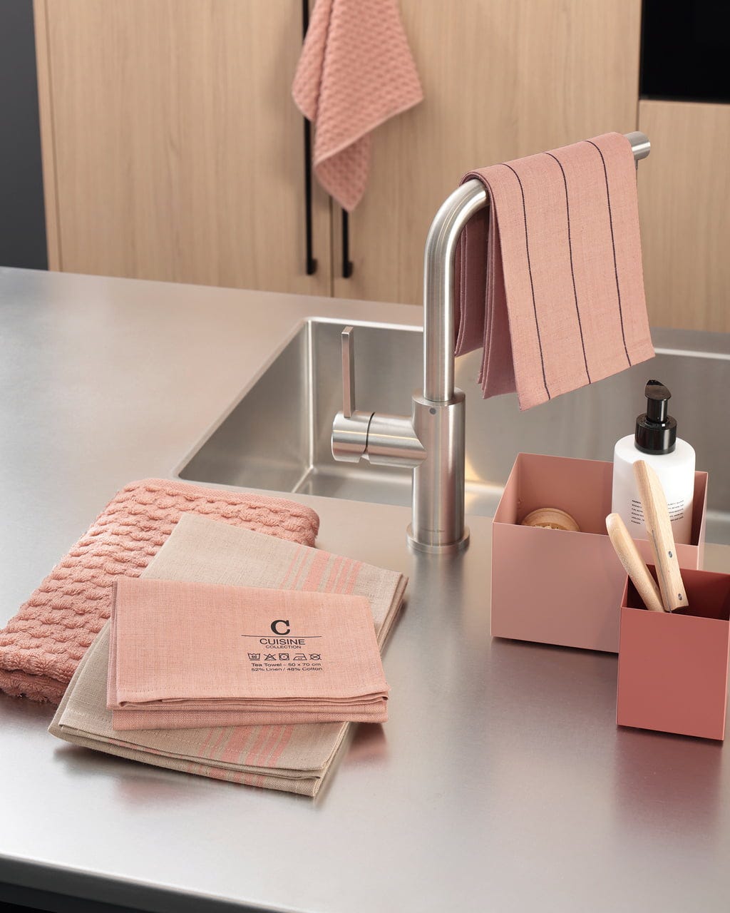 Dzięki purystycznemu wzornictwu z delikatnym paskiem i starannie dobranym, naturalnym kolorom, te ponadczasowe ścierki kuchenne wnoszą powiew świeżości do Twojej kuchni i doskonale współgrają z nowoczesnym stylem wnętrz.