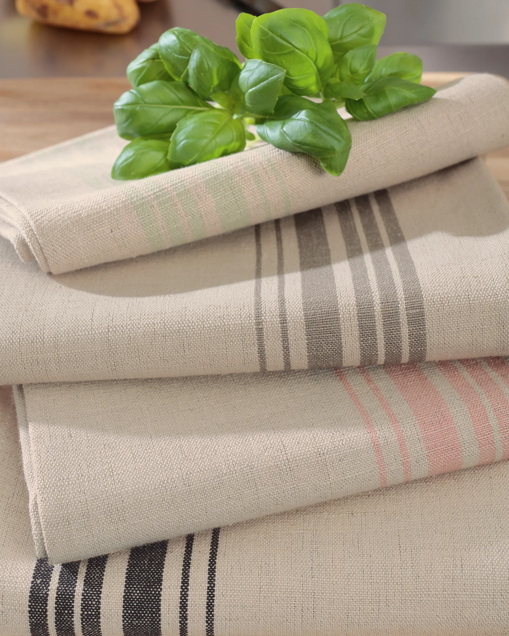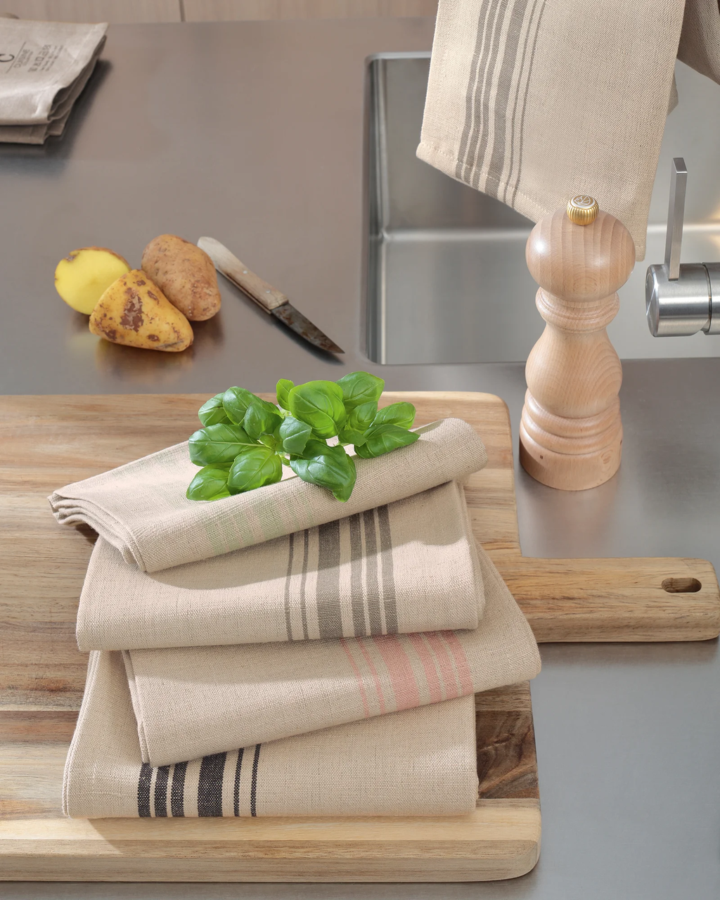 Dzięki purystycznemu wzornictwu z delikatnym paskiem i starannie dobranym, naturalnym kolorom, te ponadczasowe ścierki kuchenne wnoszą powiew świeżości do Twojej kuchni i doskonale współgrają z nowoczesnym stylem wnętrz.