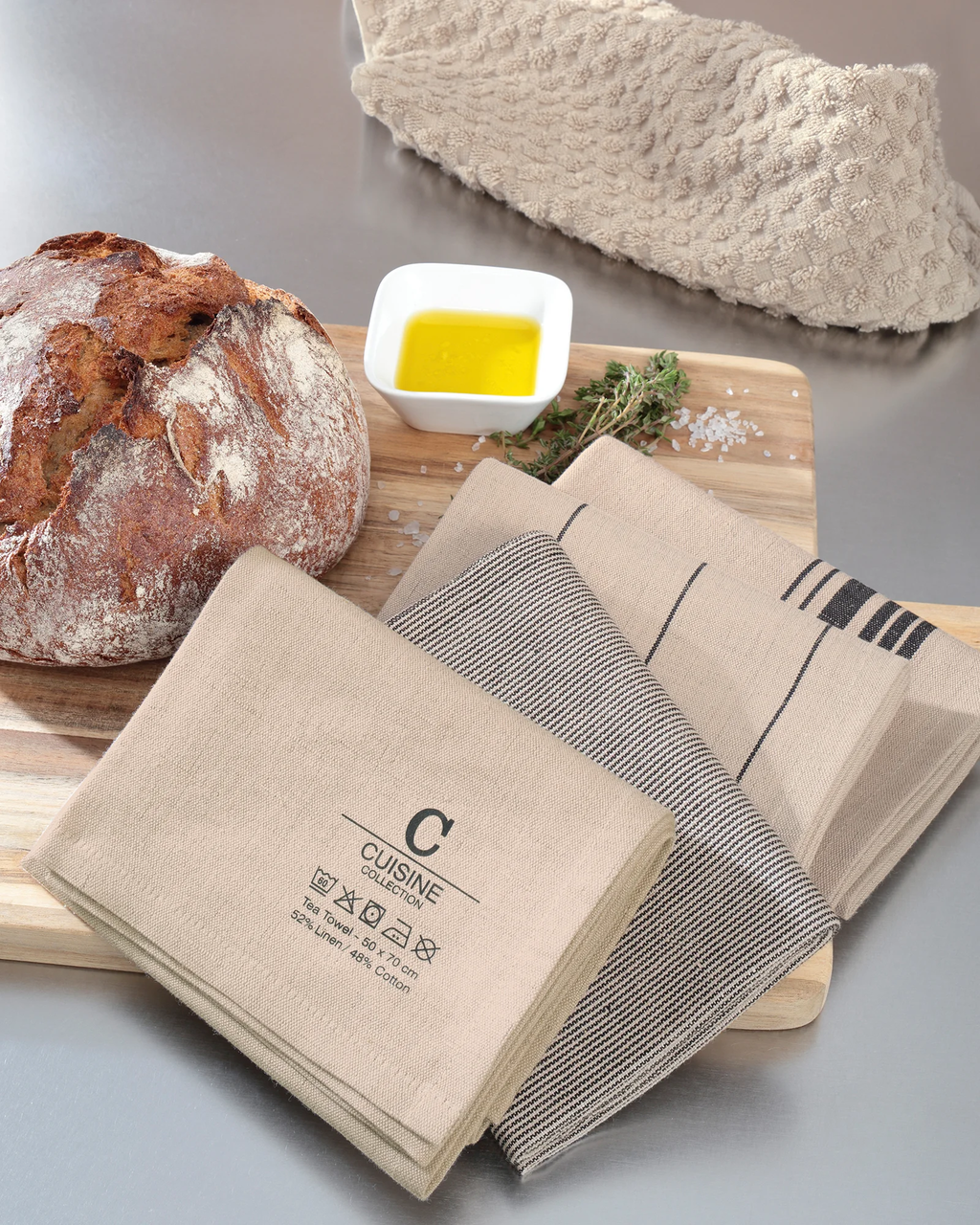 Dzięki purystycznemu designowi z delikatnymi paskami i starannie dobranym, naturalnym kolorom, te ponadczasowe ścierki kuchenne wnoszą powiew świeżości do Twojej kuchni i doskonale współgrają z nowoczesnym stylem wnętrz.