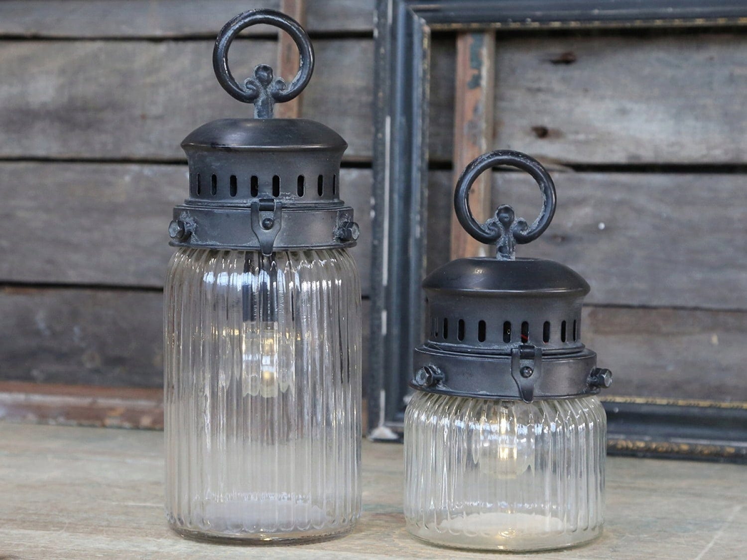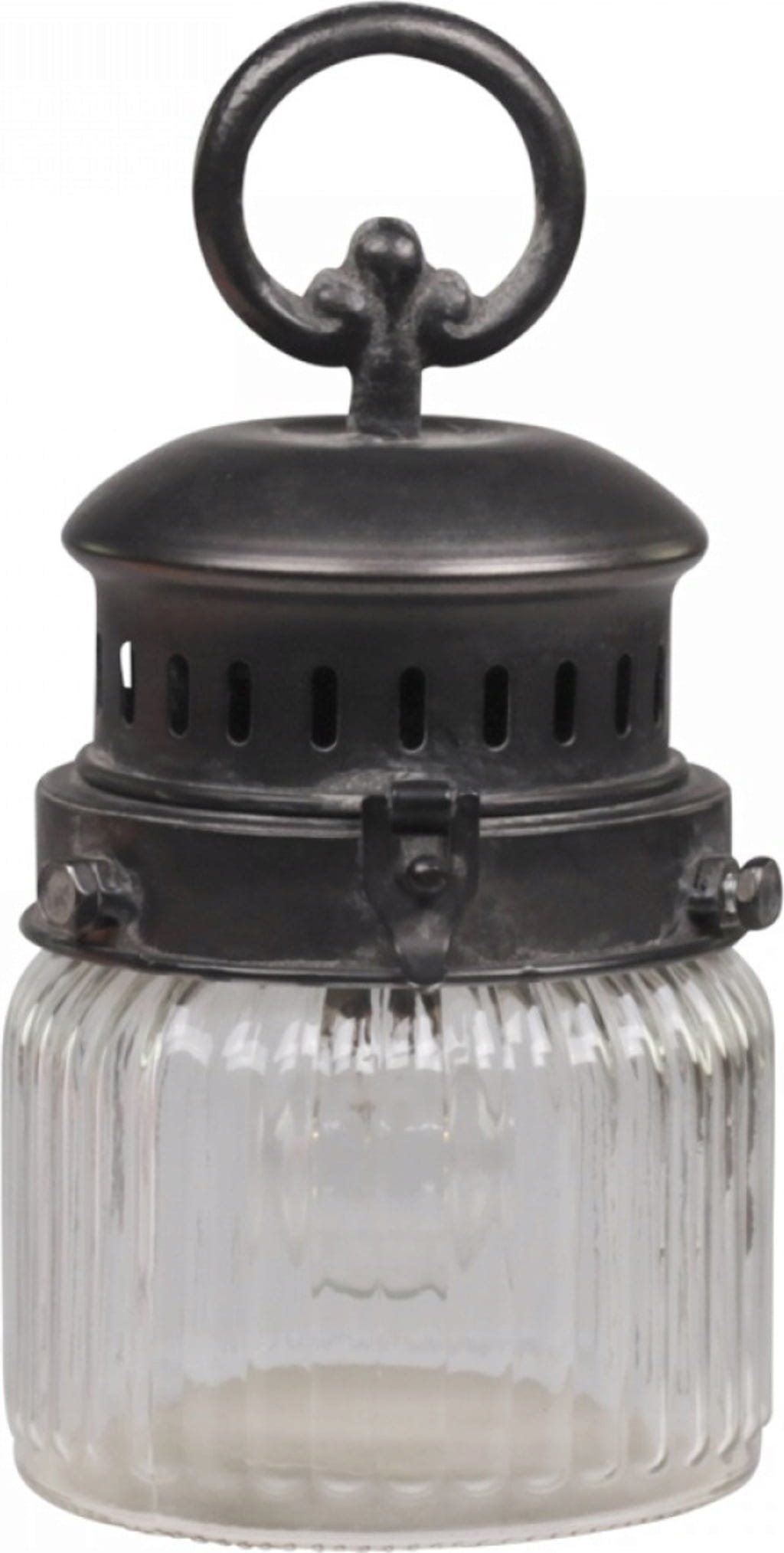 Chic Antique Francuska stabilna latarnia z żarówką i wyłącznikiem czasowym, wys. 22 cm Ø 11 cm