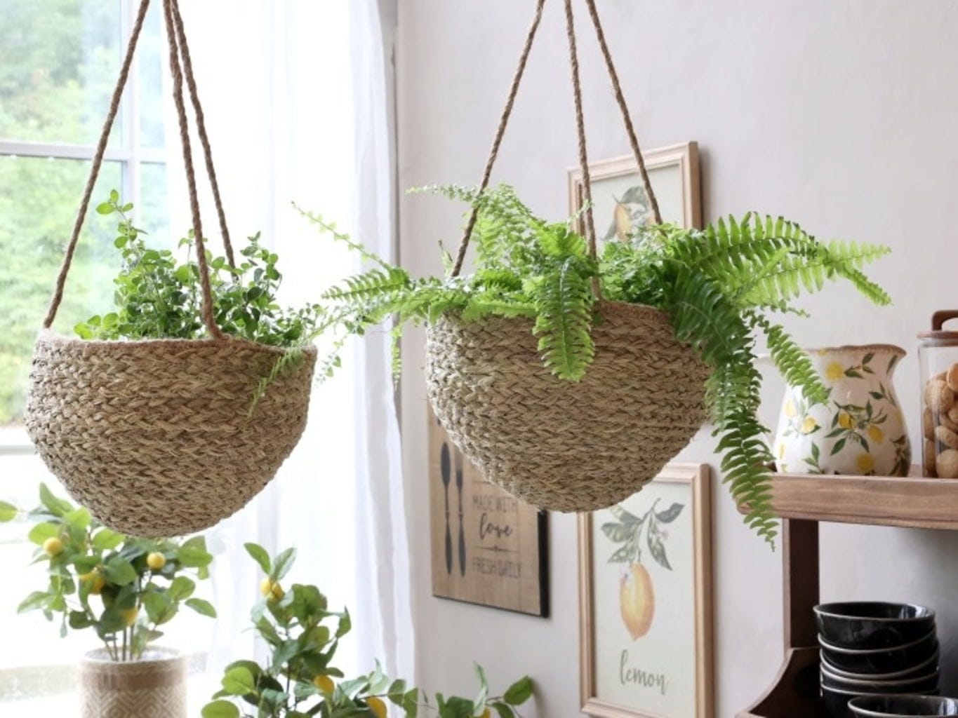 Nieważne czy w salonie, kuchni czy domowym biurze, ta wisząca doniczka wyeksponuje Twoje ulubione rośliny. Wykonana z suszonej trawy, zachwyca swoim naturalnym wyglądem i wnosi do domu swobodny styl boho.