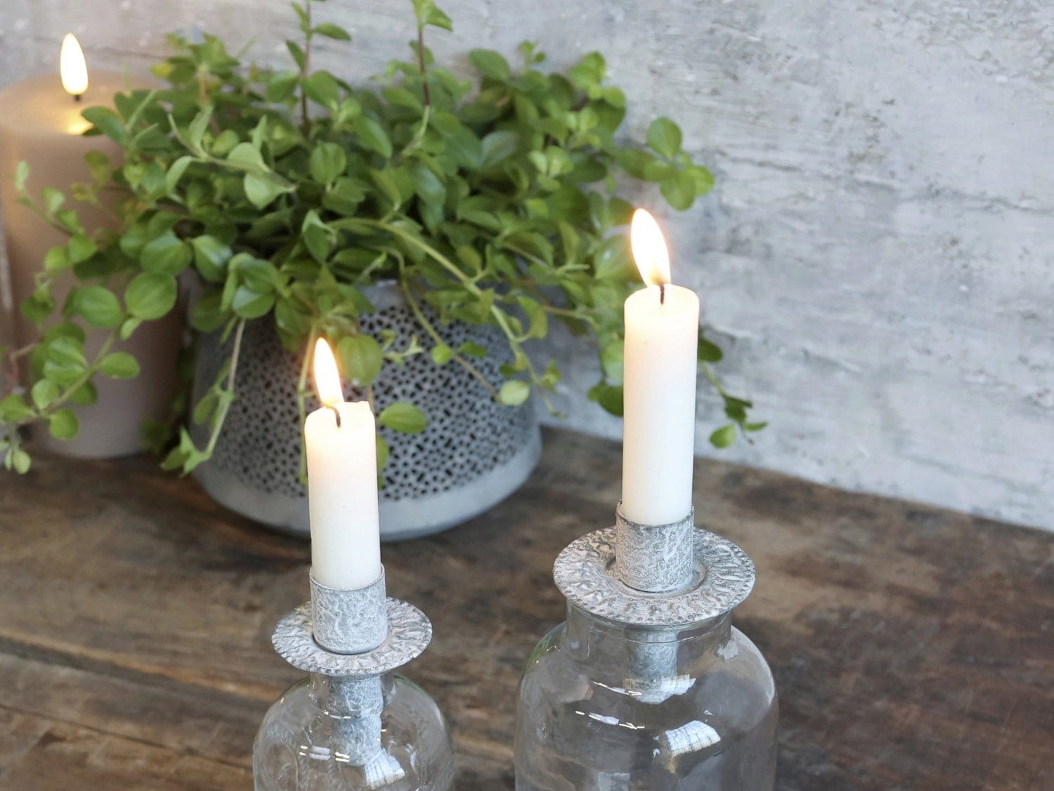 Chic Antique Świecznik na butelki wys. 8 / Ø 8 cm, cynk antyczny