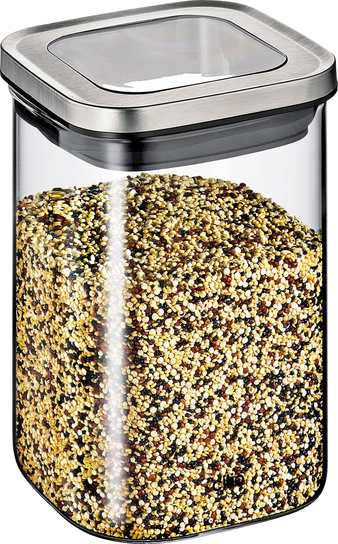 Pojemniki do przechowywania CUBO od cilio wprowadzą strukturę do Twojej kuchni. Wykonane z wytrzymałego szkła borokrzemowego, słoiki łączą w sobie niską wagę z imponującą wytrzymałością do codziennego użytku. Minimalistyczny design idealnie pasuje do każdego nowoczesnego wystroju kuchni i tworzy harmonijny wygląd na półce.