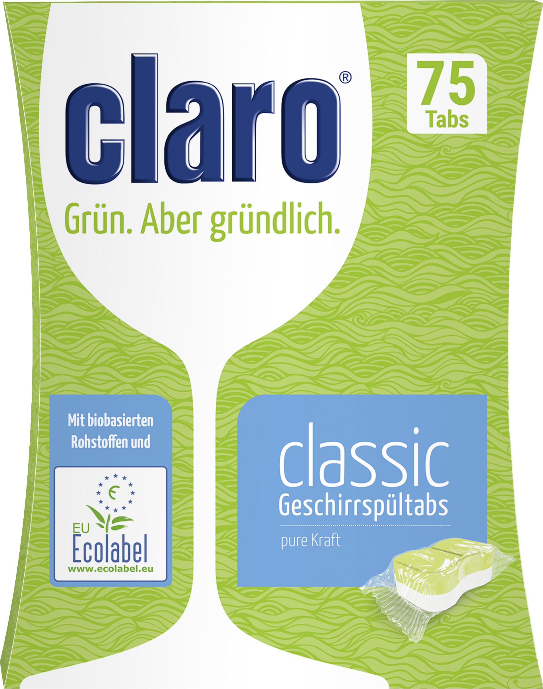 EKO Classic Tabletki do zmywarki firmy claro są niezawodnym lekarstwem na brudne naczynia i bez trudu usuwają nawet uporczywe, zaschnięte resztki jedzenia. Są pakowane pojedynczo w folię rozpuszczalną w wodzie i stopniowo rozwijają swoje działanie podczas cyklu prania. Tabletki bardzo dobrze radzą sobie z zabrudzeniami, a do tego są delikatne dla naczyń, chronią szkło i dekory. Aktywator niskotemperaturowy zapewnia doskonałe rezultaty nawet w niskich temperaturach.