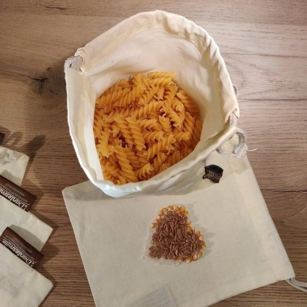 Pożegnaj się ze szkodliwymi dla środowiska plastikowymi torebkami! Ten piękny woreczek z czystej ekologicznej bawełny jest idealną ekologiczną alternatywą dla tradycyjnych toreb plastikowych i nieodzownym towarzyszem na zakupy i w domu. Jest idealny do orzechów, makaronów, zbóż, mąki, cukru, soli, chleba i wielu innych. Ponadto jest nie tylko niezbędny w kuchni, ale również użyteczny w całym gospodarstwie domowym. W nim możesz przechowywać kosmetyki, zabawki i buty - jakkolwiek go użyjesz, zawsze masz poczucie bycia przyjaznym dla środowiska.