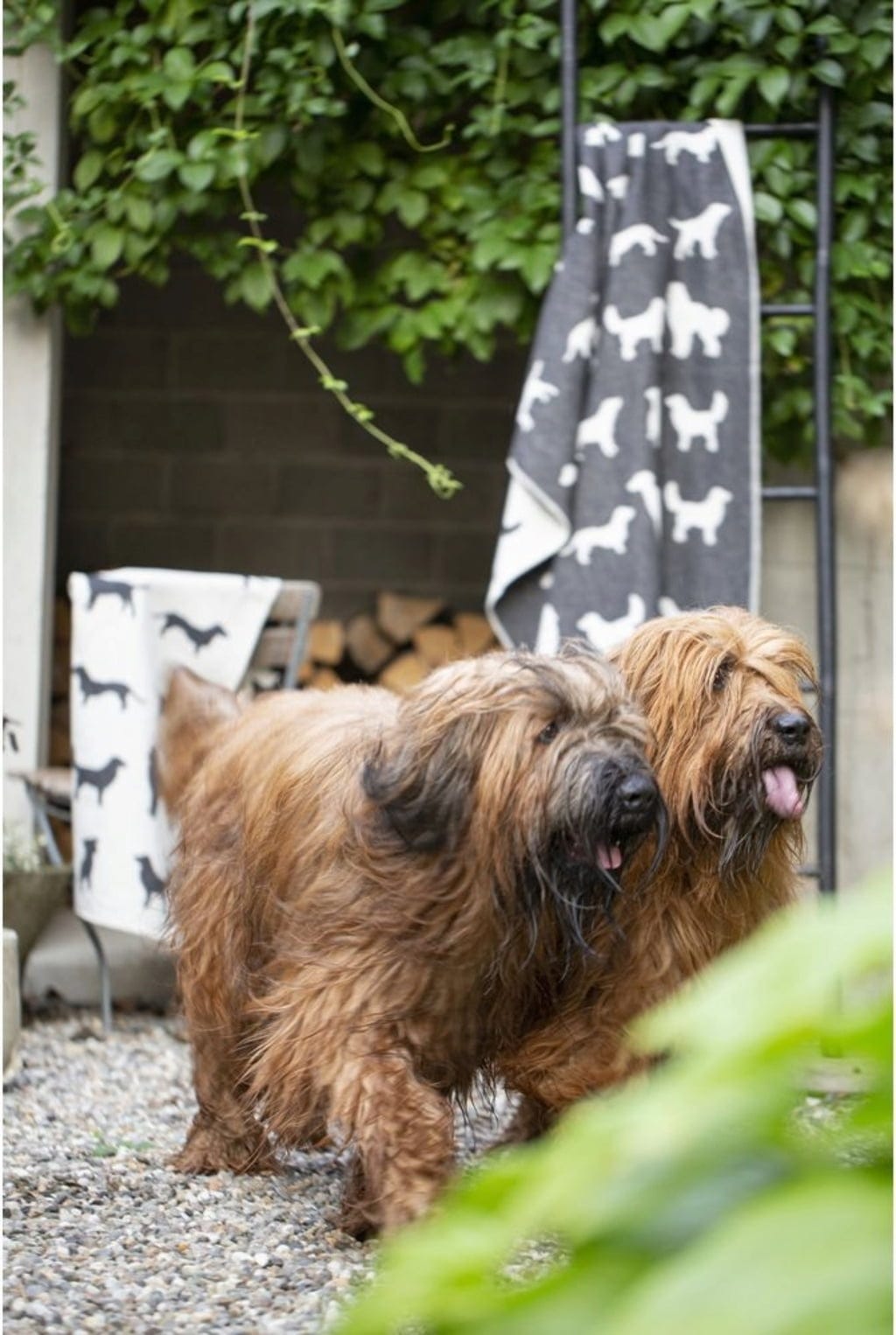 Stwórz miłe miejsce dla swojego ulubionego przyjaciela i jednocześnie chroń sofę lub inne meble: Możesz to zrobić doskonale dzięki temu dużemu, wysokiej jakości kocowi. Pięknie zaprojektowany z sylwetkami różnych ras psów. Całość podkreśla kolorowy szew w odcieniu nude.